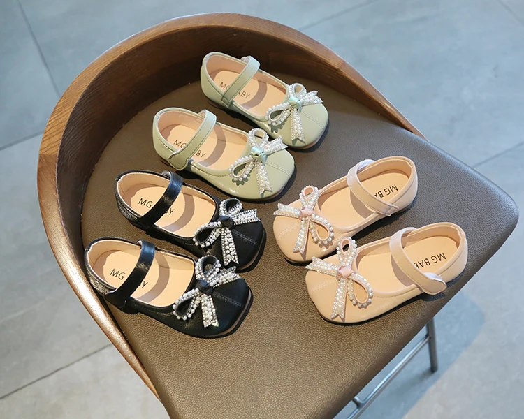 Обувь для девочек ULKNN с жемчужинами и бабочками, обувь принцессы с бусинами, блестящая обувь Мэри Джейн для детей, детская кожаная обувь зеленого цвета 2021