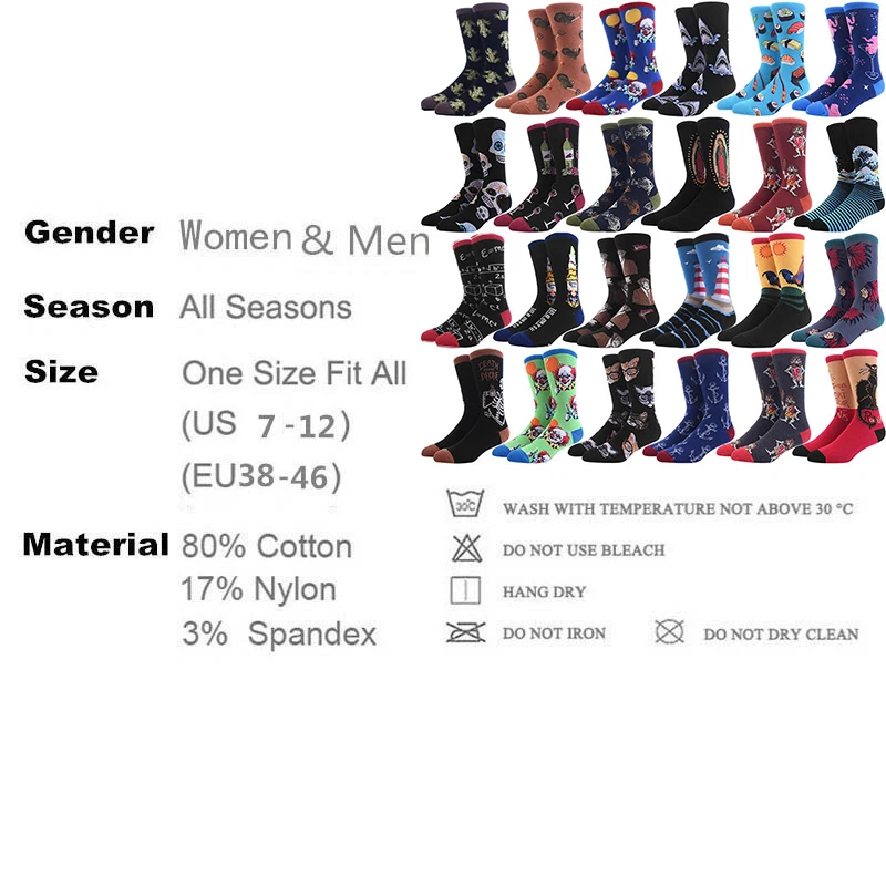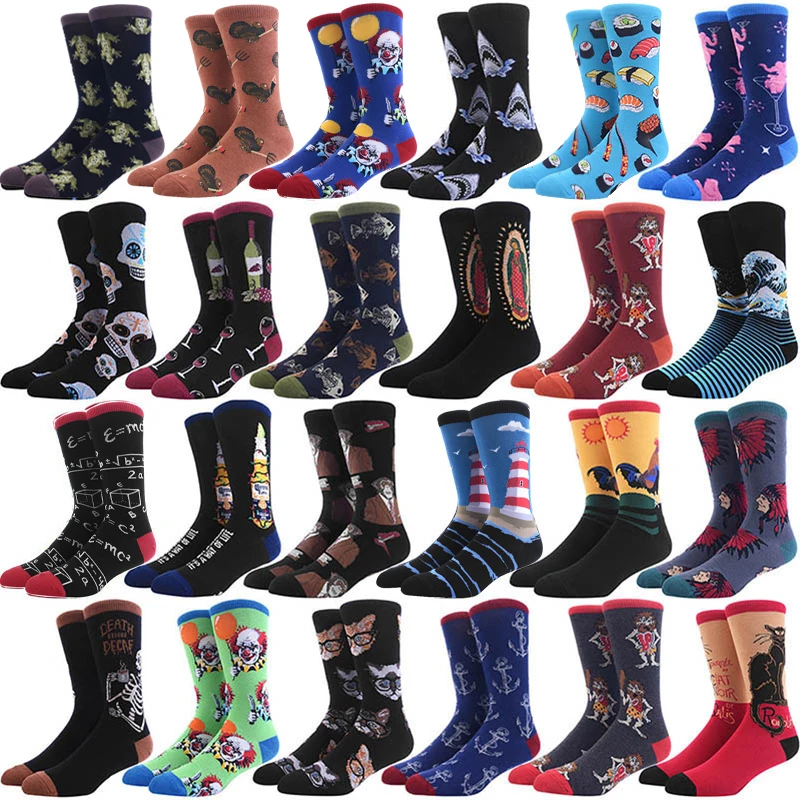 Модные мужские носки из чесаного хлопка в стиле хип-хоп, модные счастливые носки в стиле Харадзюку с изображением акулы, клоуна, скейтборда, картины маслом, животных, забавные носки