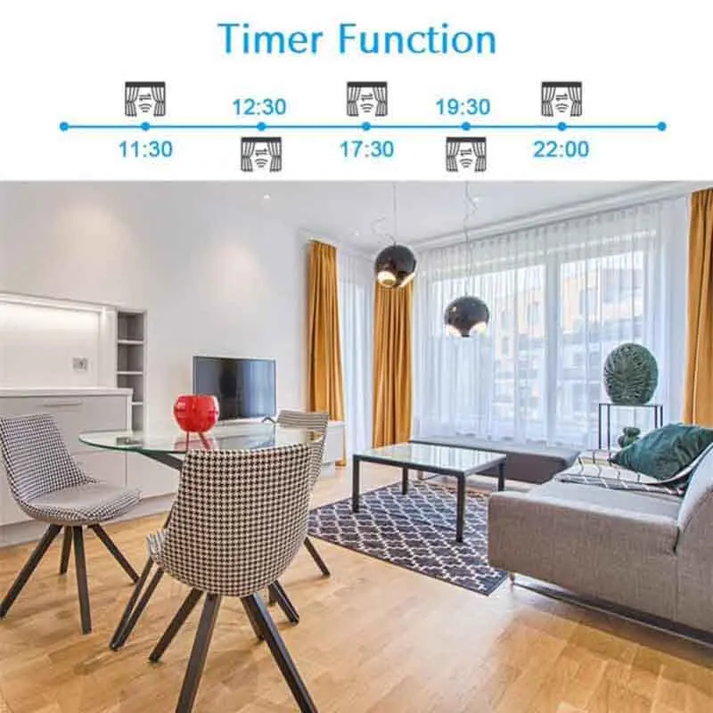 【Timing】 умный переключатель автоматически включается и выключается в данный момент времени через функцию таймера. Выберите время, когда вы хотите проснуться, автоматически Откройте занавески, чтобы вы могли легко войти в день; Выберите время, которое вы хотите закрыть занавески.