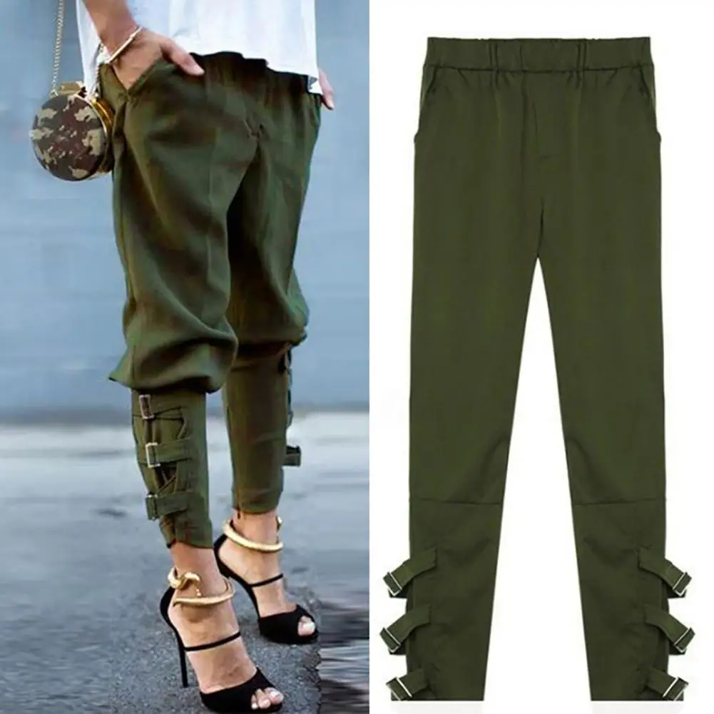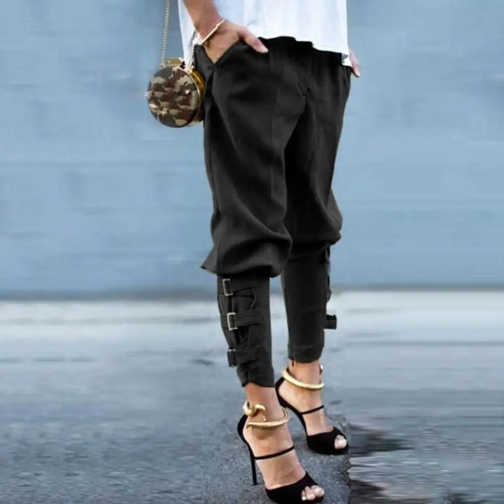 Однотонные Длинные шаровары с пряжкой на ремнях, повседневные женские свободные длинные брюки
