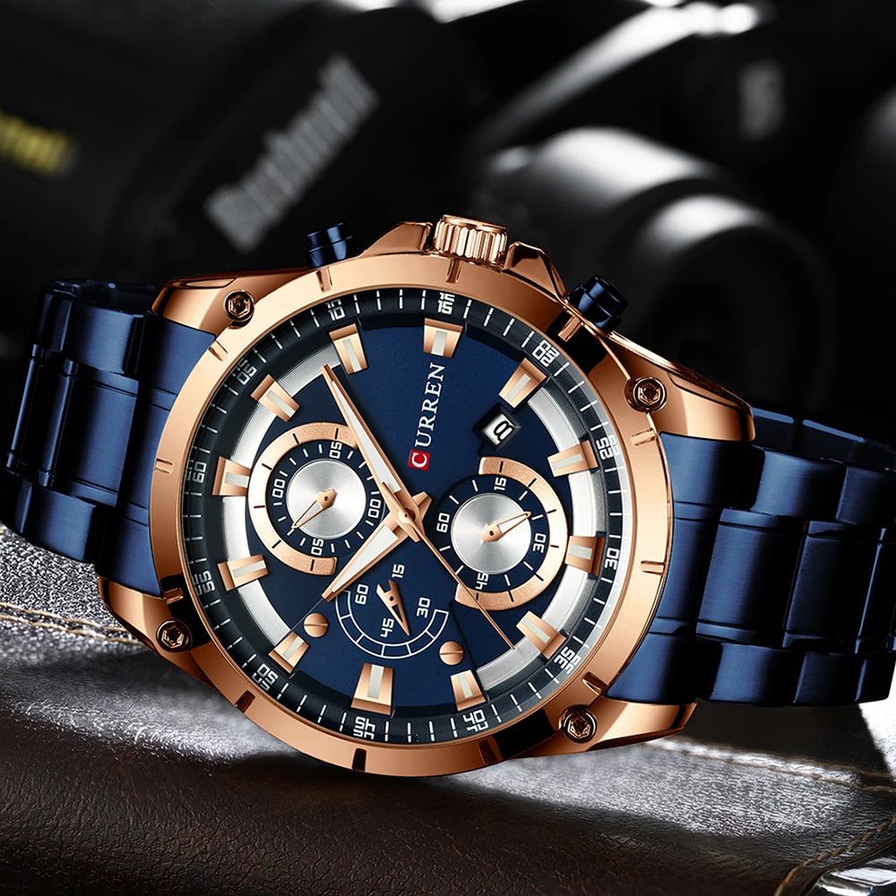 Часы Мужские CURREN, из нержавеющей стали, прочные, с тремя цифербл...