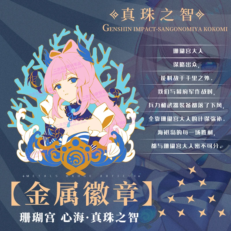 Игровая брошь Genshin Impact Sangonomiya Kokomi Raiden Shogun, мета...