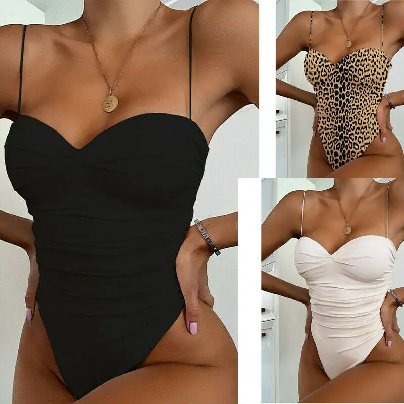 Купальник 2021 женский однотонный волнистый комбинезон пуш-ап пляжный бандажный цельный купальник купальный костюм для женщин трикини Монокини