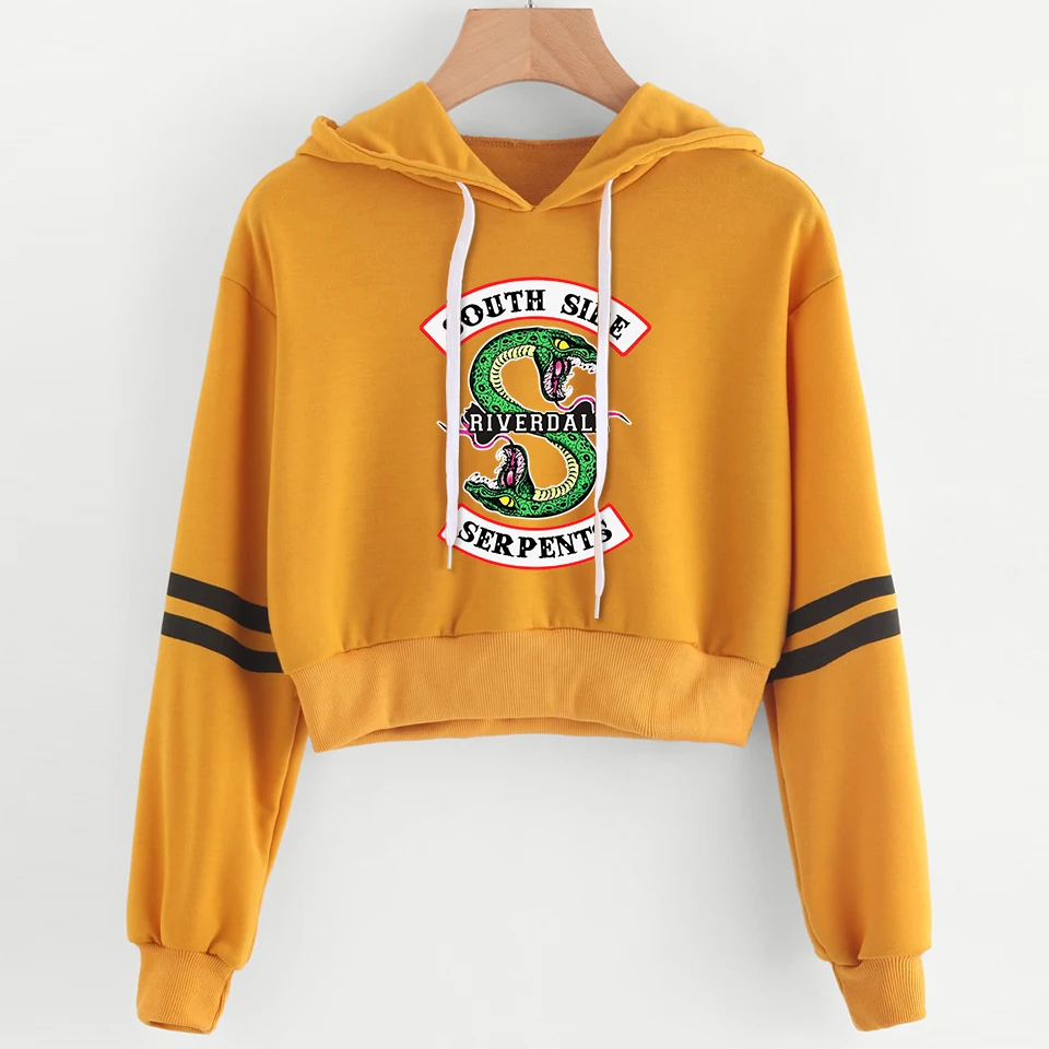 Новые модные популярные укороченные толстовки Riverdale, свитшоты с высокой талией, женская сексуальная женская одежда с принтом змея на юге