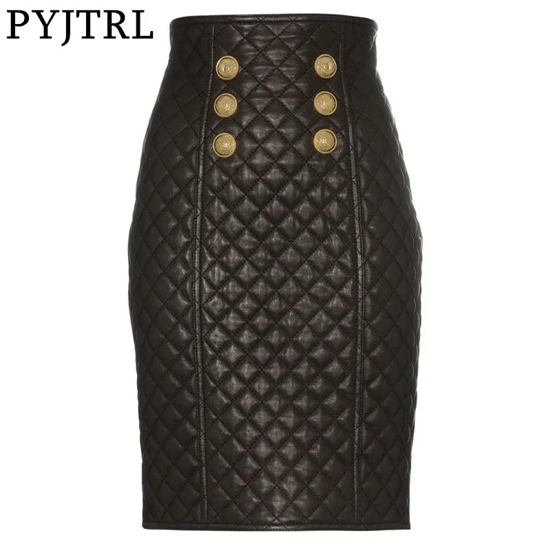PYJTRL Женская осенне-зимняя новая модная кожаная юбка на молнии с высокой талией