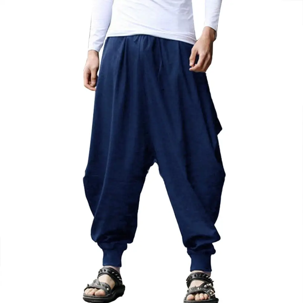 Шаровары винтажные однотонные свободные для спорта, длинные брюки с широкими штанинами и эластичным поясом, спортивные шаровары с широкими штанинами