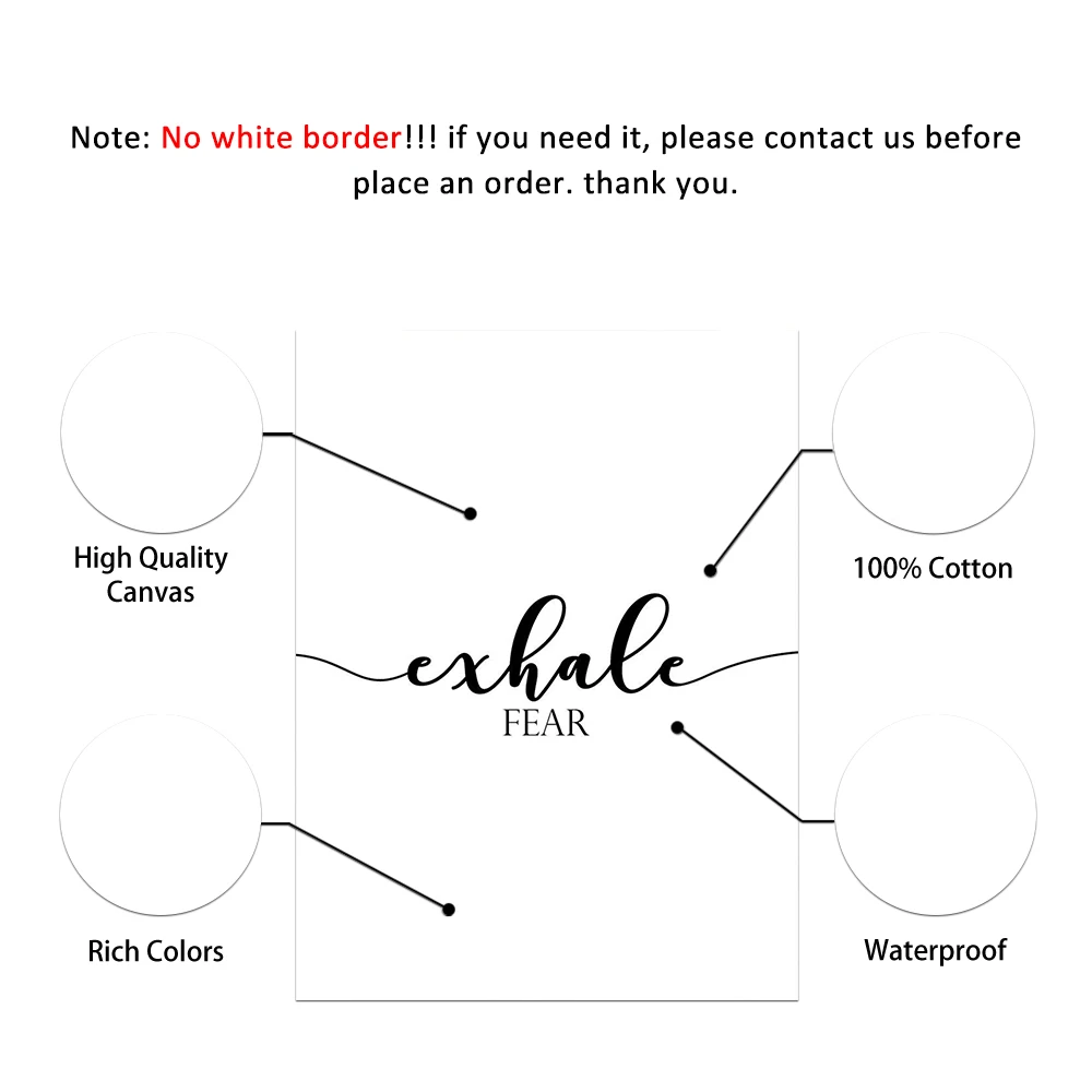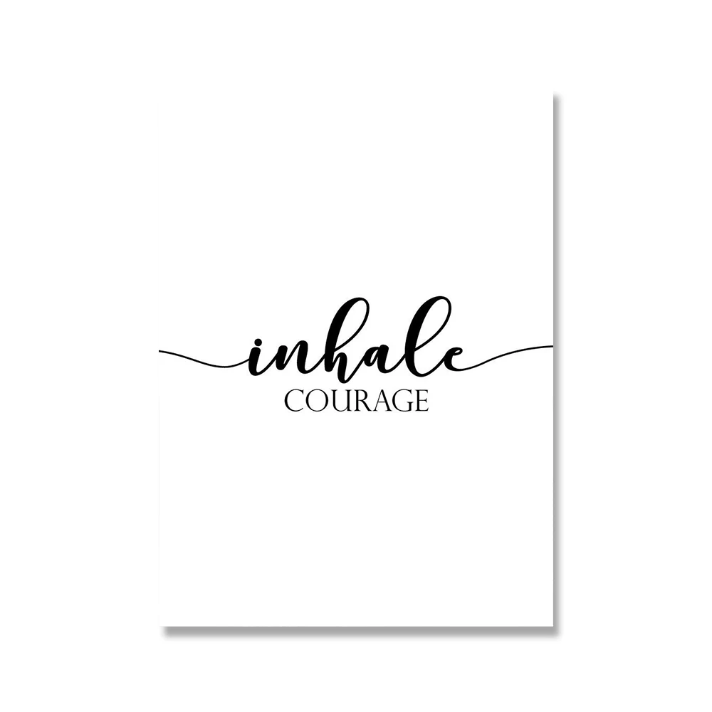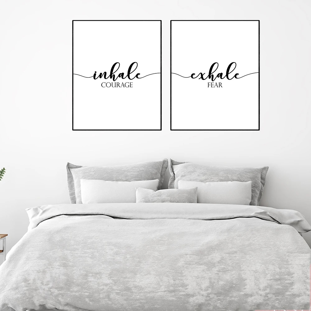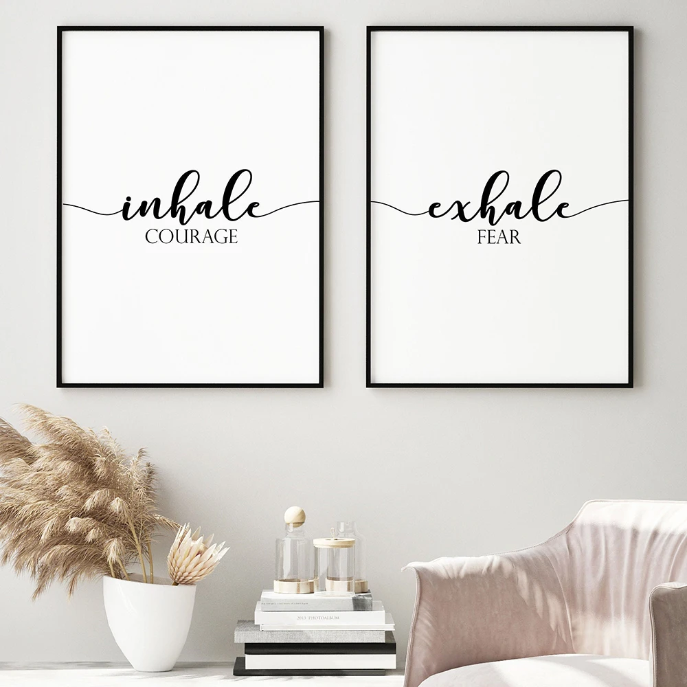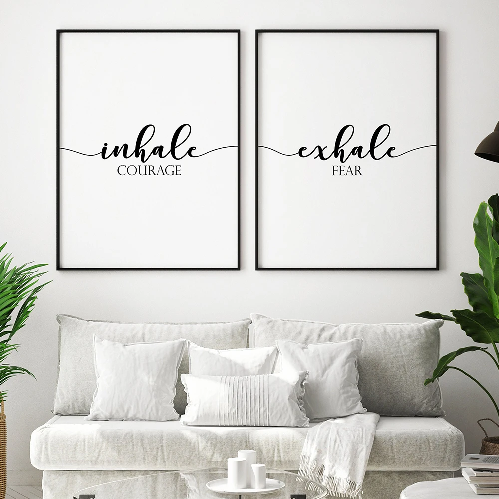 Плакат вдохнуть мужество выдохнуть страх, черно-белый, минималистский холст, Настенная картина, декоративная картина, нордический Декор для комнаты