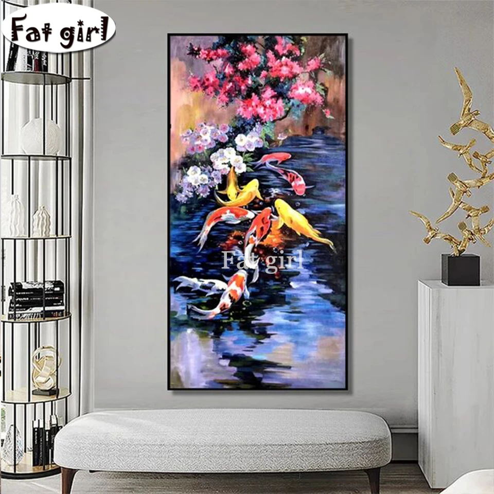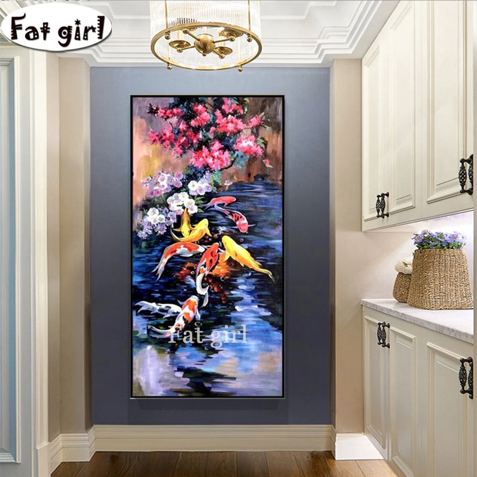 Большая парча, украшение из карпа, алмазная картина, вертикальный декор для прихожей, алмазная вышивка крестиком, Современная Алмазная вышивка