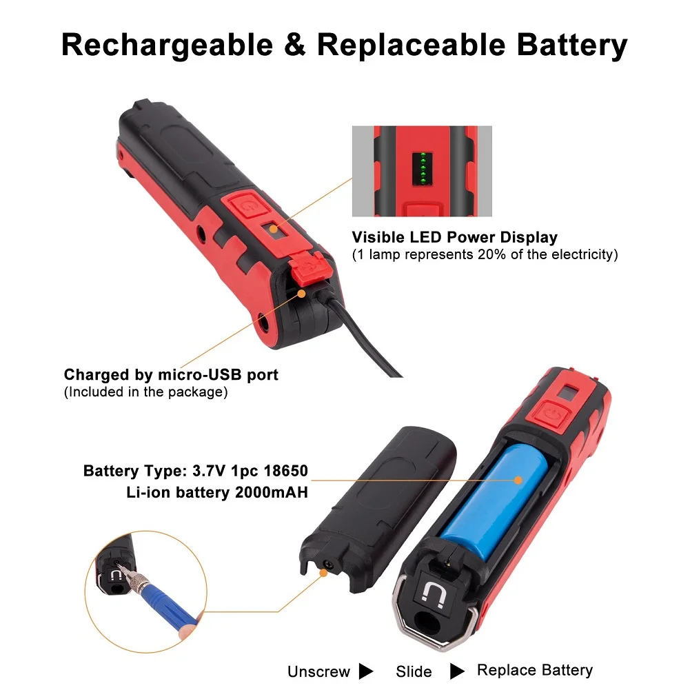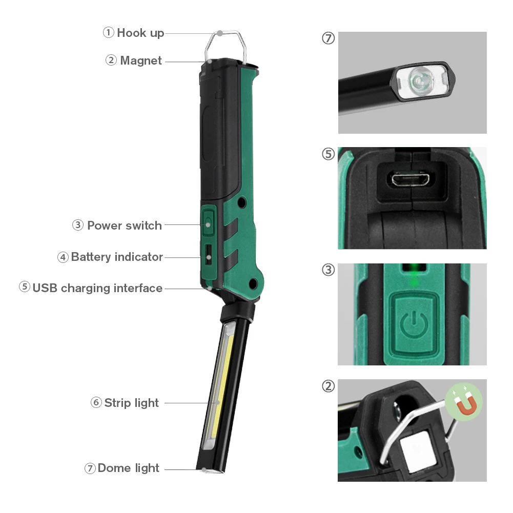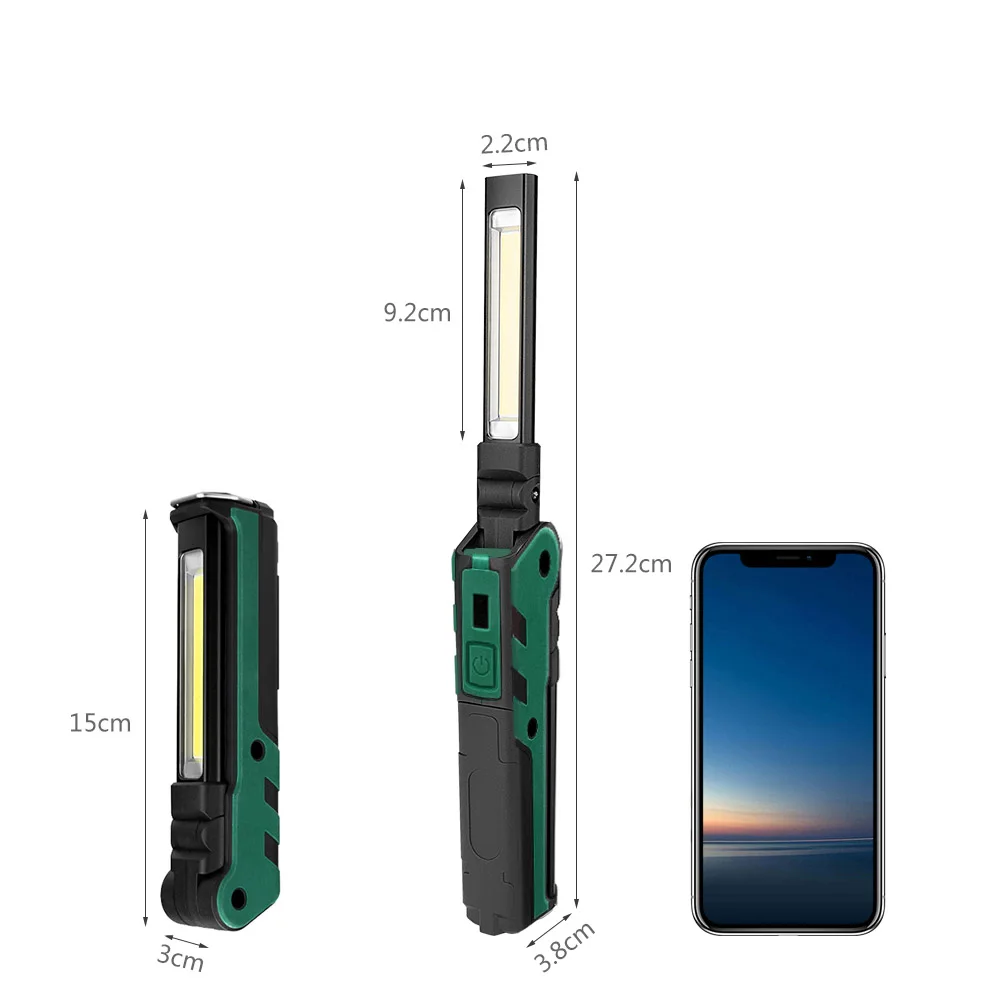 COB светодиодный, яркий и энергосберегающий.Светосветильник панель вращается на 180 °, свободное преобразование в разных ситуациях, повышает эффективность работы.С USB-портом, легко заряжать.Поставляется с магнитом и крючком, складная конструкция, легко использовать в небольшом пространстве внутри.Светодиодный рабочий светильник-идеальный инструмент для кемпинга, походов, путешествий, чтения, мастерской, ремонта автомобилей, чрезвычайных ситуаций и домашнего использования и т. д.Спецификация:Материал: АБСЦвет изделия: красный, зеленый, оранжевыйСветильник: белыйСветильник почка светодиодный + COBРежимы освещения: головсветильник/COB светильник (COB светильник может долгое нажатие кнопки переключения для регулировки яркости)Источник питания: Встроенный аккумуляторТип переключателя: кнопкаРазмер в сложенном виде: прибл. 15 см x 3 см x 3,6 смВес: 164 гПосылка входит:1 светильник