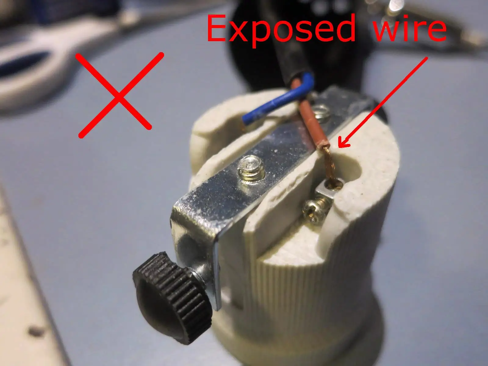 Патрон лампы в порядке, прочный зажим, вертлюг и соединение прочные, а корпус металлический. Нормально Но провода очень тонкие, около 0,5 мм (должно быть 0,75 мм) и внутренняя изоляция провода также тонкая. Этот тип патрона лампы должен иметь высокотемпературные провода от патрона (изоляция из стекловолокна). Переключатель не хороший XX Предупреждение!, Мой патрон лампы был очень небезопасным. Активный провод (коричневый) был обнажен значительно и близко к металлическому кронштейну. Поскольку Земли нет, это может привести к живой внешней металлической оболочке и поражению электрическим током. Это проблема заводского качества. (Это не вина продавцов) Я повторно изолировал провода и использованные клеммы для бутлайса. Теперь это безопаснее.