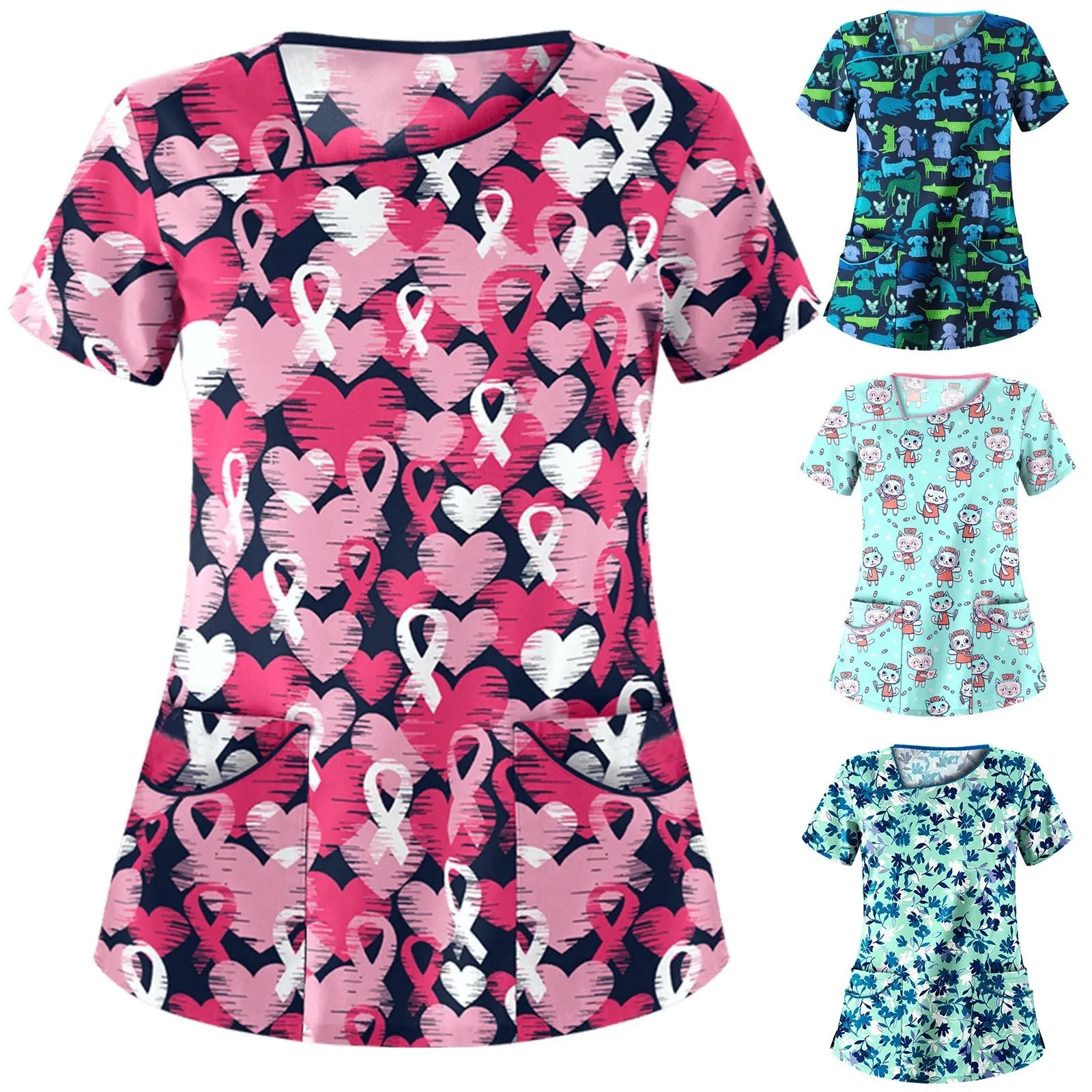 Женская стильная футболка с изображением персонажей видеоигр для кормления с принтом скрабы Топы Футболка свободного покроя с коротким рукавом для женщин скрабы униформа медсестры v-образным вырезом с большими карманами женская одежда