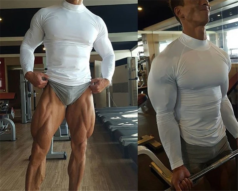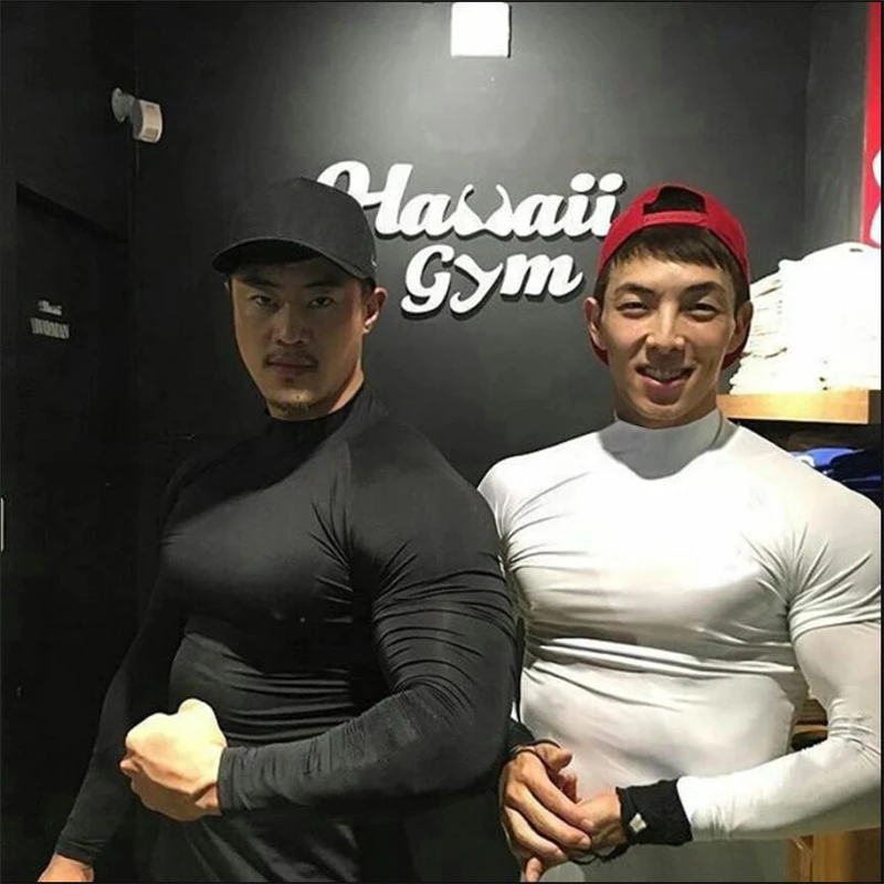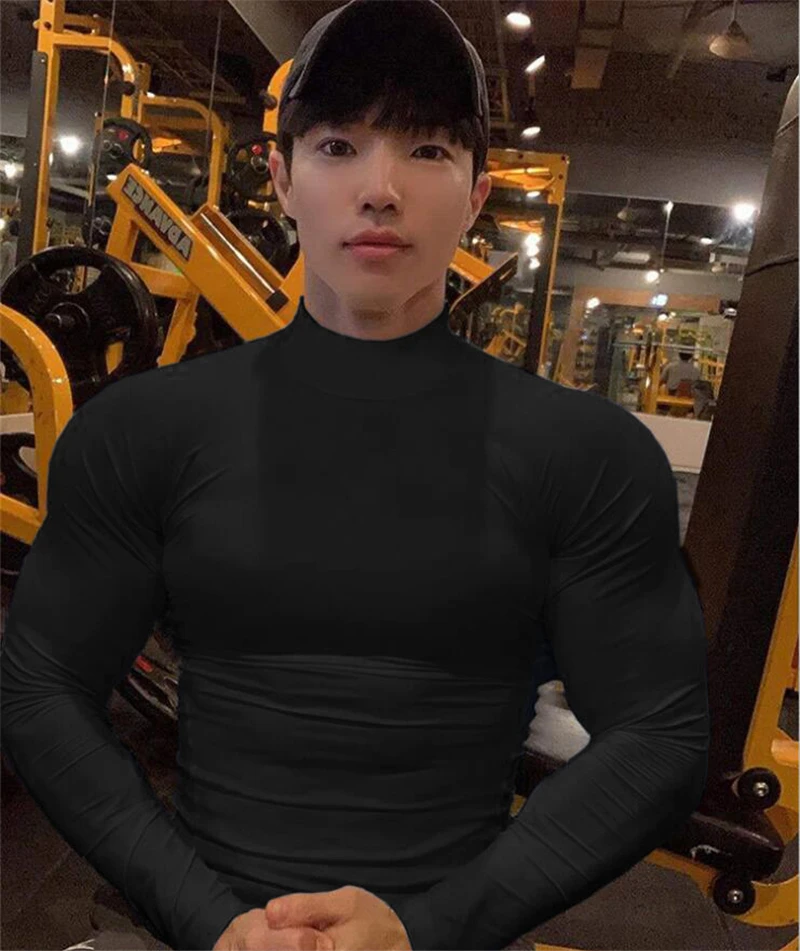 Компрессионные топы, уличная футболка с высоким воротником для бега, мужская спортивная одежда с длинным рукавом для бодибилдинга, футболка для спортзала, облегающая одежда для фитнеса