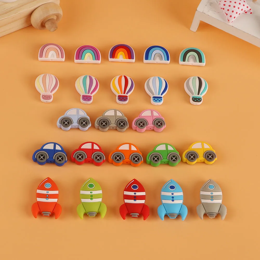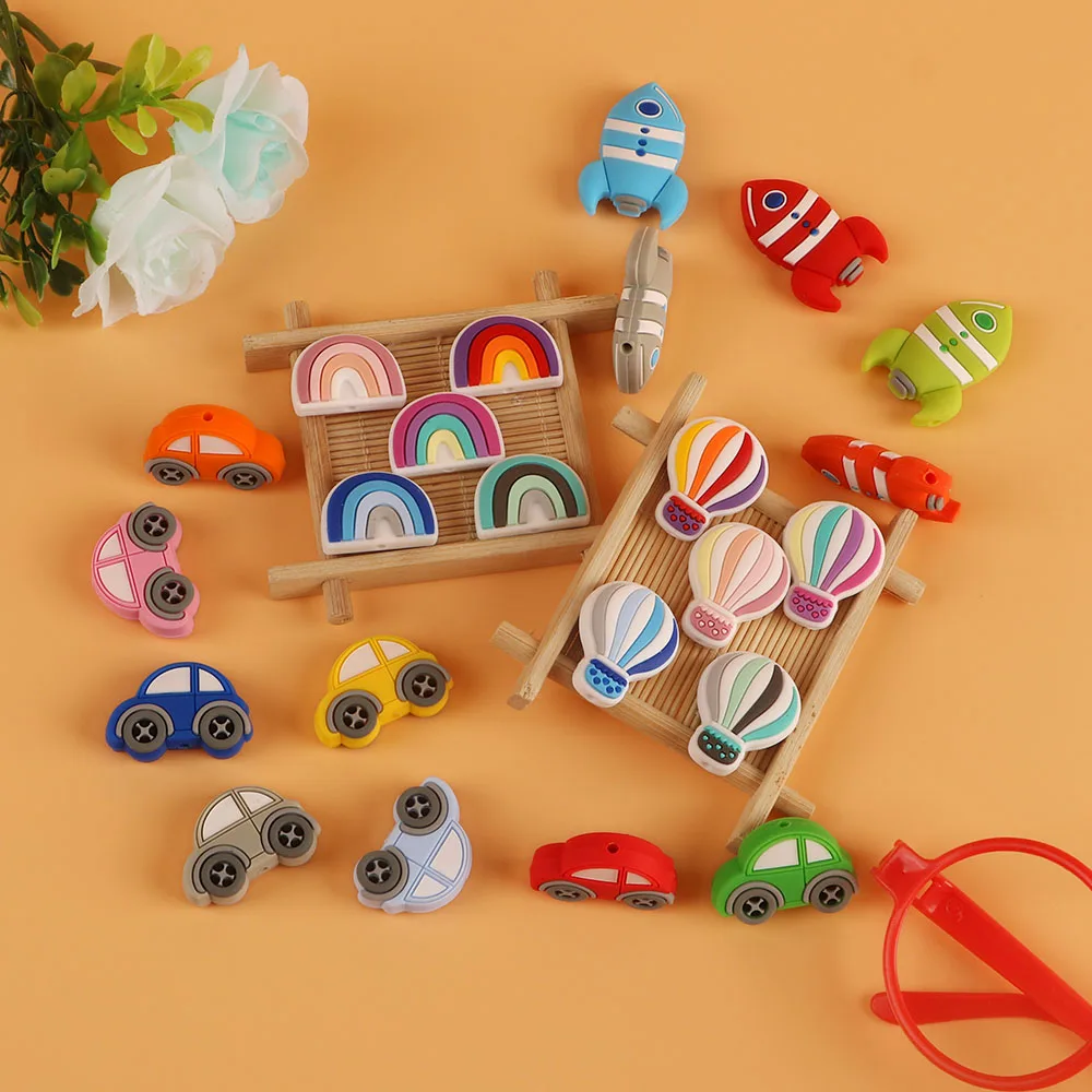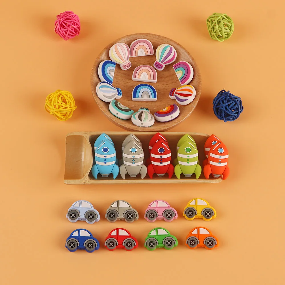 Kovic 10 шт. силиконовые бусины Мини Воздушный шар Радуга автомобиль ракета BPA бесплатно пищевого качества подвески уход за прорезывателем Детские молярные игрушки