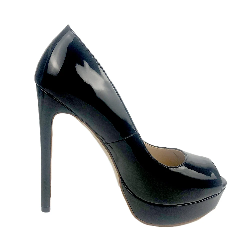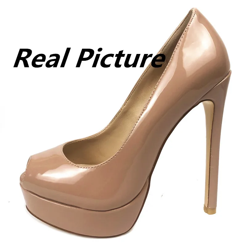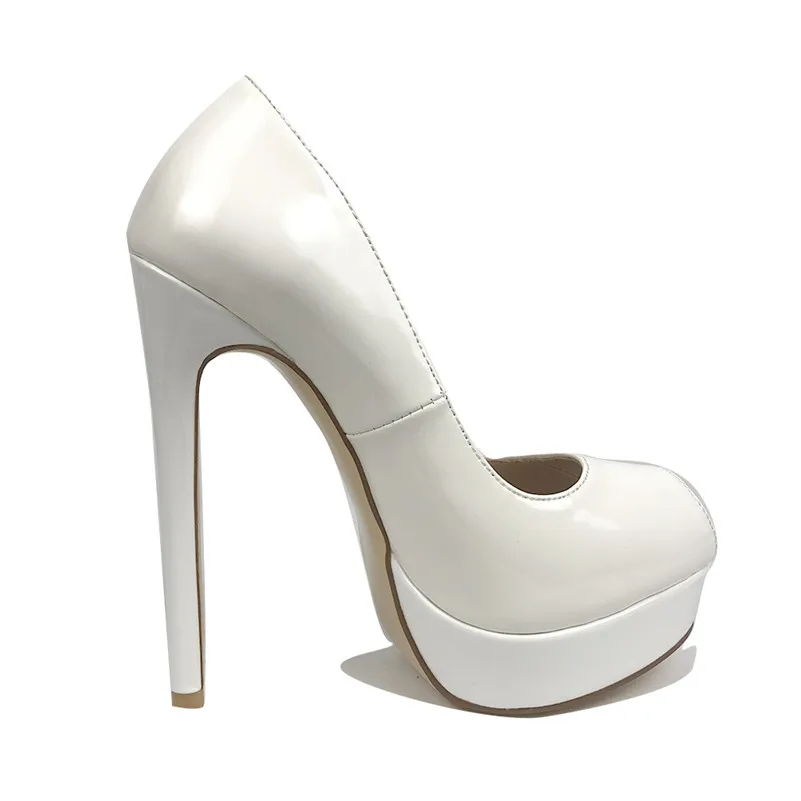 Пикантные женские туфли-лодочки на очень высоком каблуке, с открытым носком, на платформе, без застежки вечерние модельные свадебные туфли 14 см, большой размер
