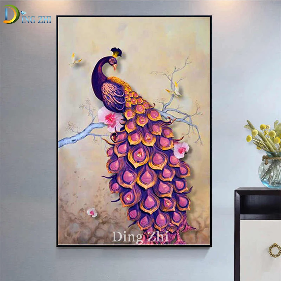 Горячая продажа 5D DIY Алмазная картина круглая квадратная фиолетовая павлинья Стразы Скандинавская простая картина вышивка крестиком Мозаика