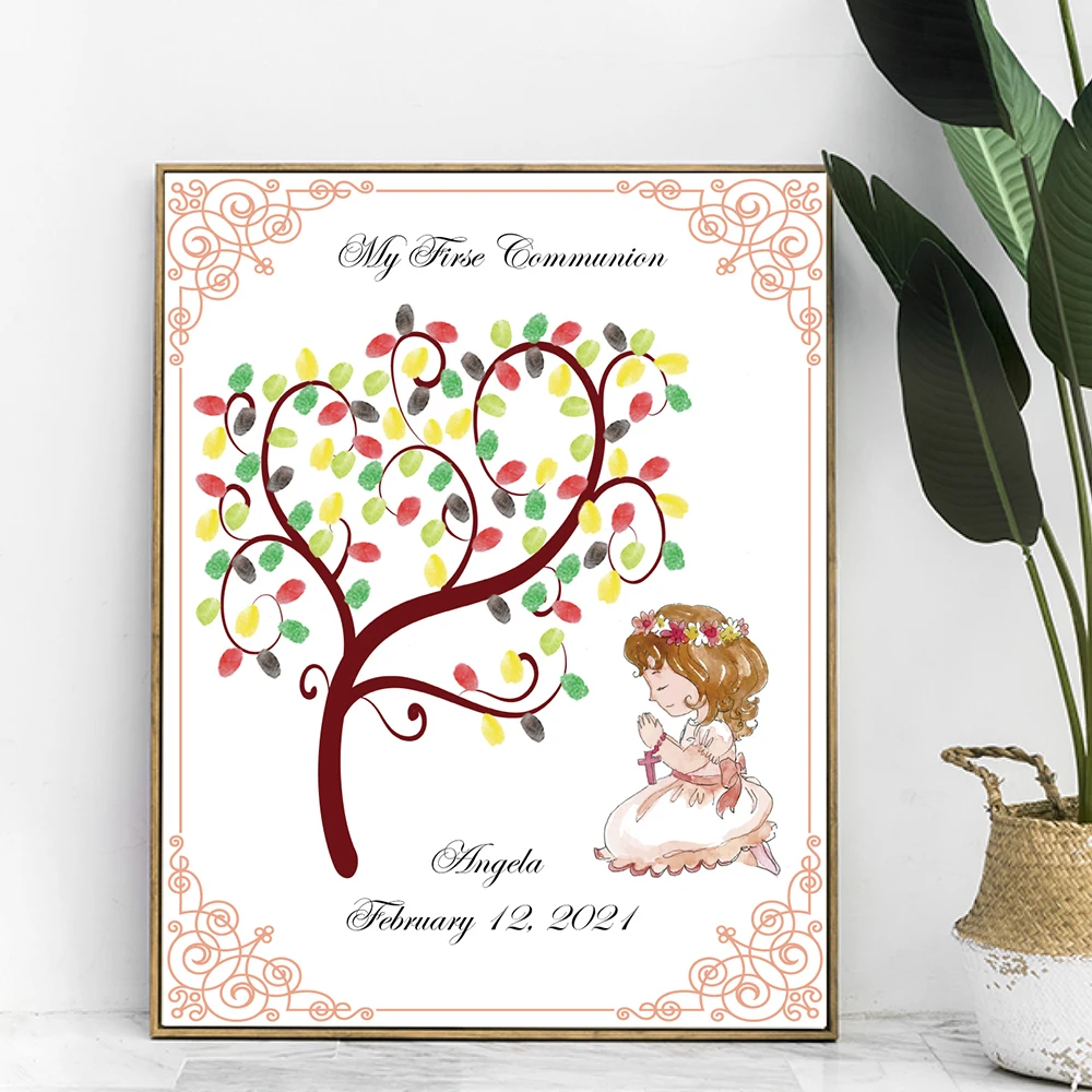 Новейшая индивидуализированная Дата имени Mi Primera Comunion отпечаток пальца Сделай Сам гостевая книга для мальчиков и девочек праздничное украшение для первого причастия сувенир