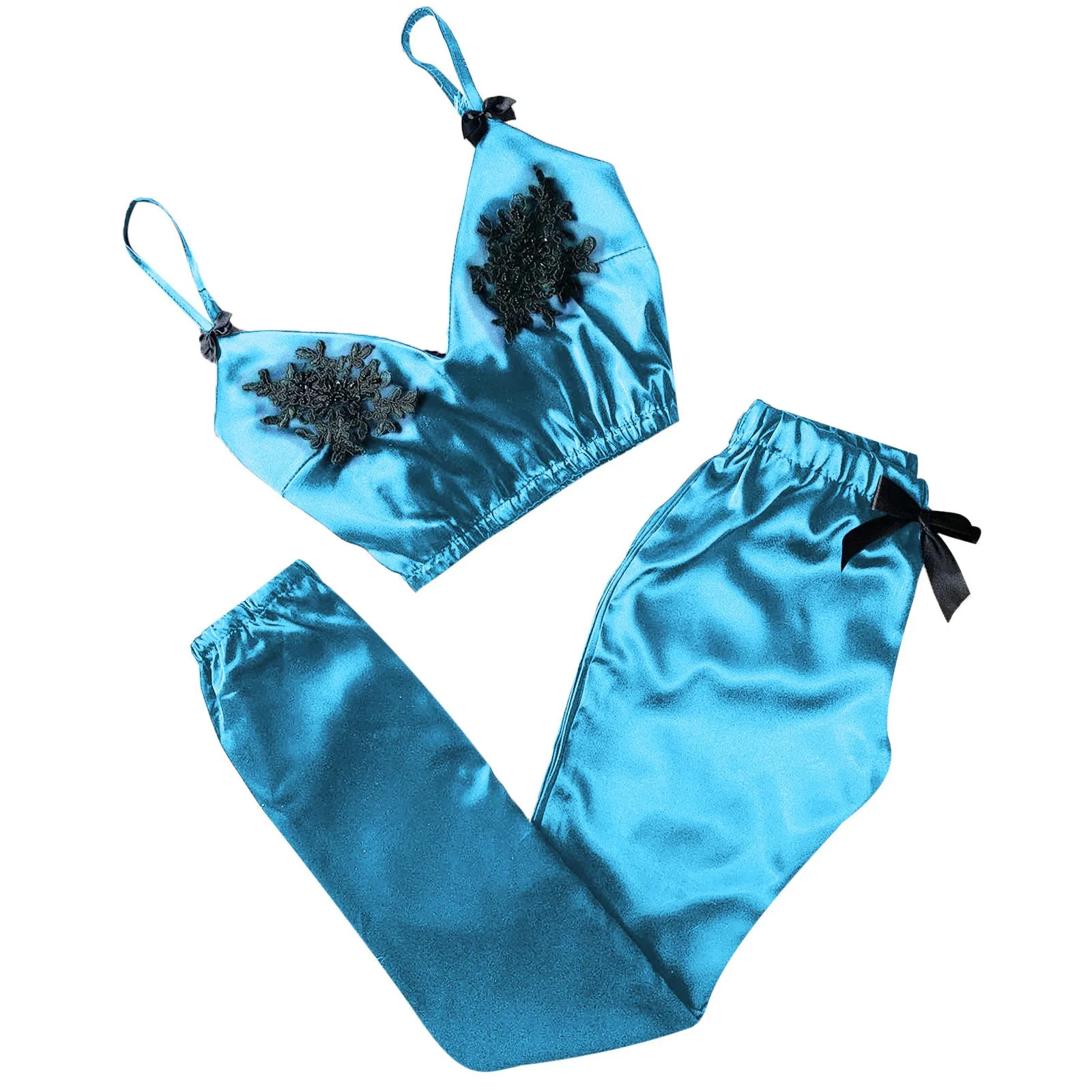Номер моделиy Stain Camisole Pajamas Bowknot Pants Set