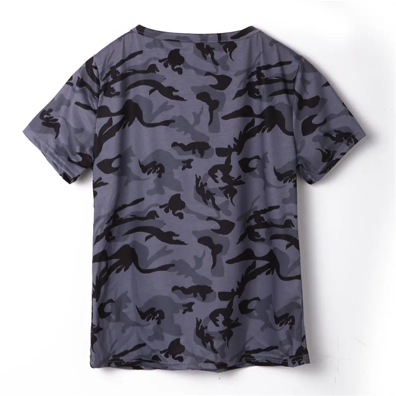Женская камуфляжная футболка с коротким рукавом, летняя повседневна...
