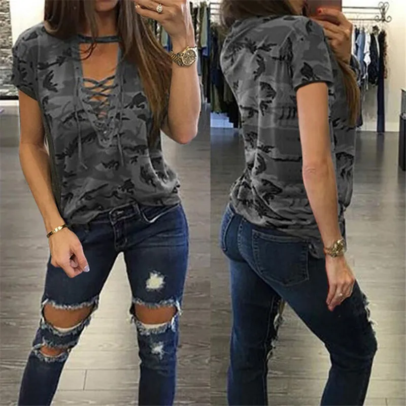 Женская камуфляжная футболка с коротким рукавом, v-образным вырезом...