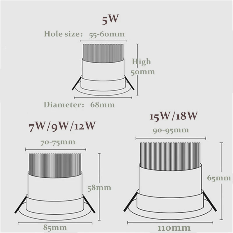 Затемнения светодиодный COB Точечный светильник потолочный светильник AC85-265V 5 Вт 7 Вт 9 Вт 12 Вт 15 Вт 18WAluminum Утопленный вниз светильник s круглый светодиодный панельный светильник