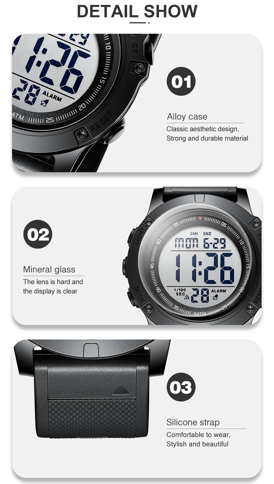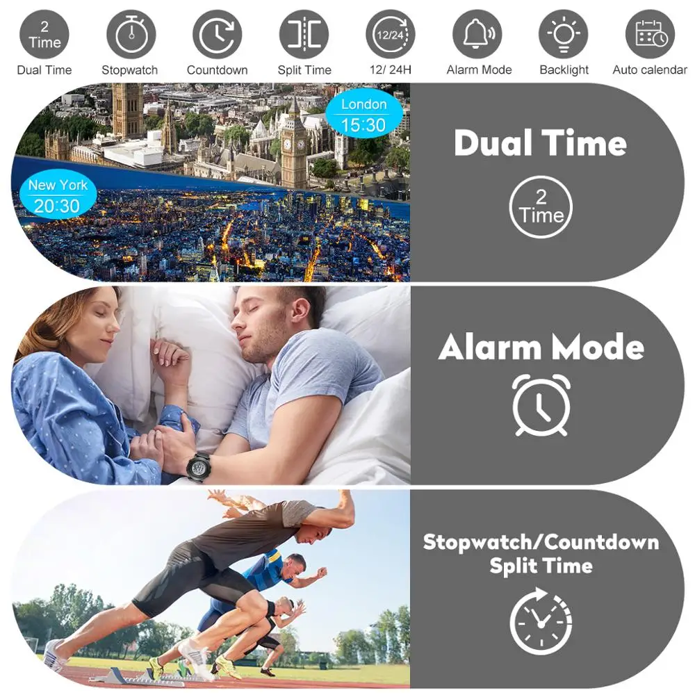 Часы GOLDENHOUR для мужчин, спортивные часы для улицы, военные водонепроницаемые цифровые часы, светодиодный ские светодиодные Многофункциональные часы с будильником, мужские часы