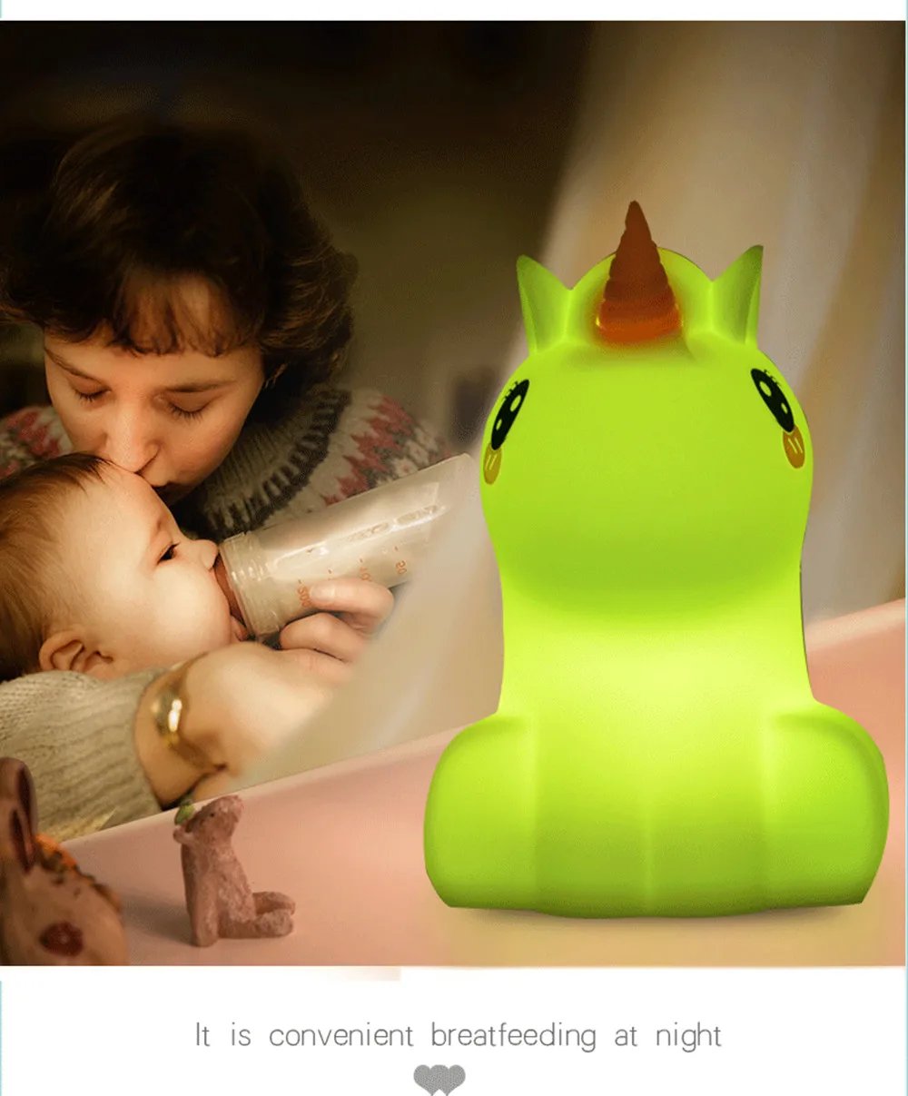 Светодиодный ночсветильник в виде единорога с сенсорным датчиком и пультом дистанционного управления, 9 цветов, регулируемый таймер, перезаряжаемая силиконовая лампа для детей, подарок ребенку
