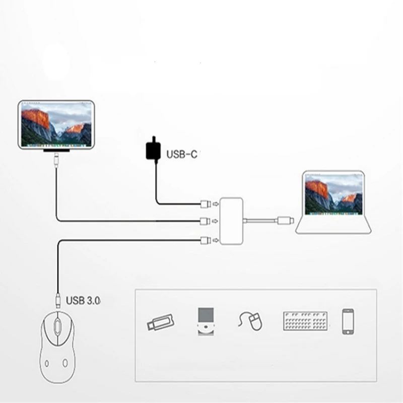 USB-концентратор Tebe Type-c на HDMI, 3 в 1, 4K, HDMI, USB 3,0