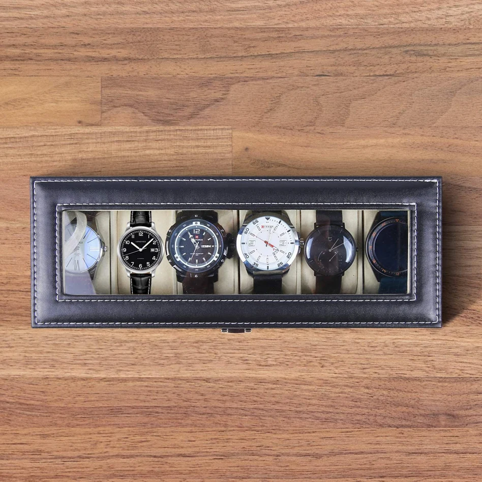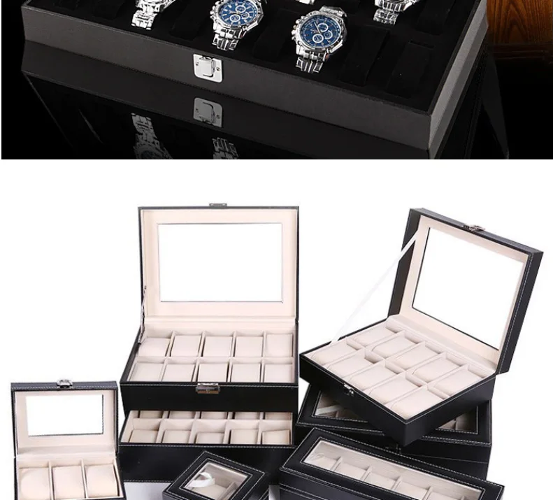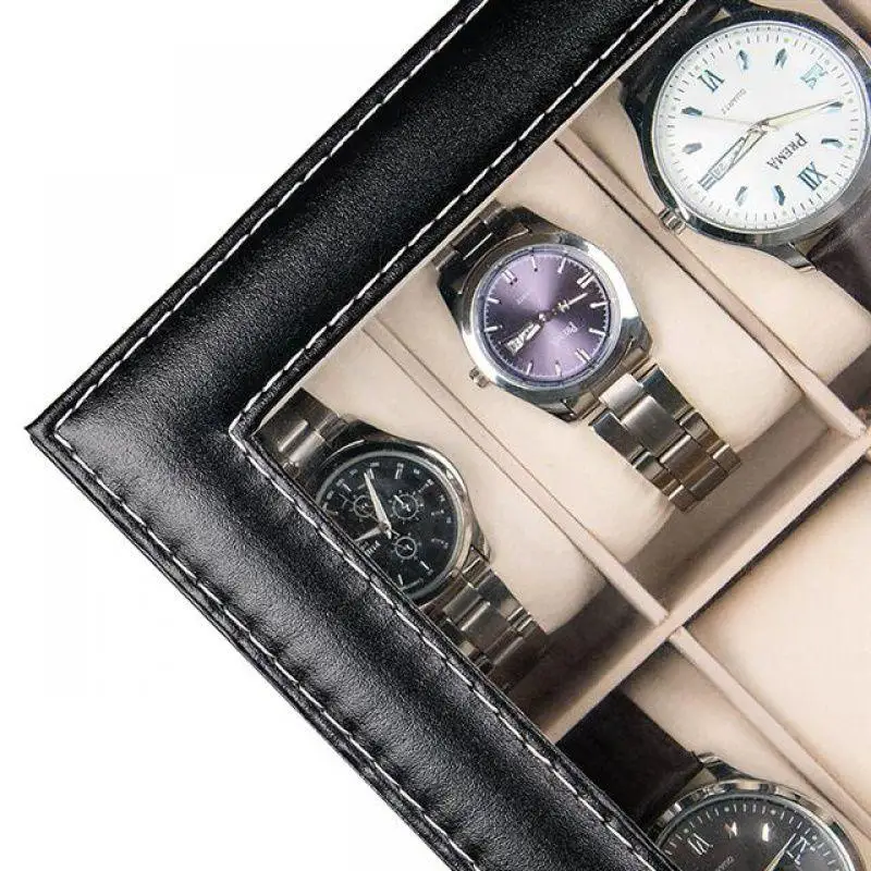 3/6/10/12 Сетки Коробка для часов с кожаным ремешком Чехол держатель, органайзер, хранилище, сумочка, коробка для браслет часы шкатулки для украшений Дисплей лучший подарок