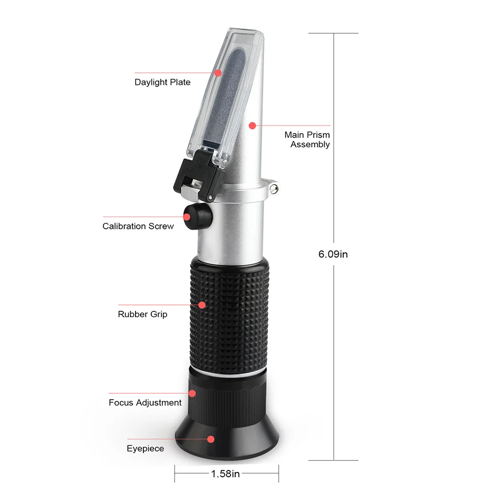 Совершенно новый и высокое качество. Прочный и долговечный. Сверхпрочный и легкий с алюминиевой конструкцией. Используется только окружающий светильник, что означает, что аккумулятор или источник питания не требуются. Оснащен измерением масштаба, которое обеспечивает прямое считывание, легко фокусируется и калибруется. Точные результаты тестирования гарантированы. Мягкая и удобная Нескользящая Резина