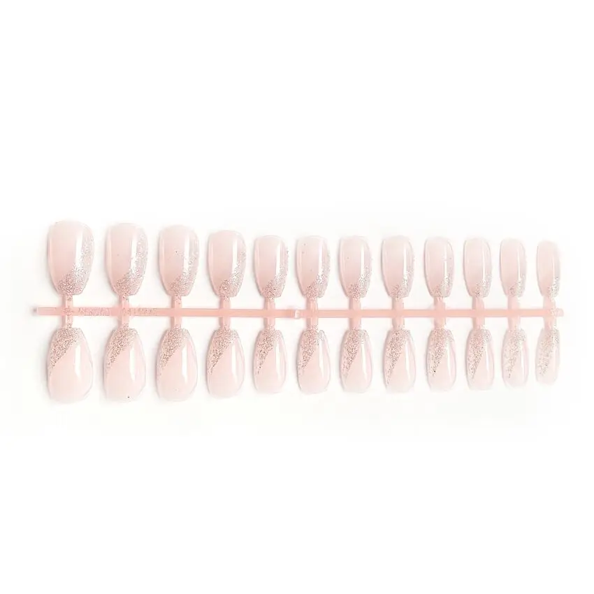 24 шт./компл., розовые накладные ногти телесного цвета, квадратные серебряные блестящие накладные ногти с клеем, красивые свадебные балетки для невесты, наклейки для ногтей