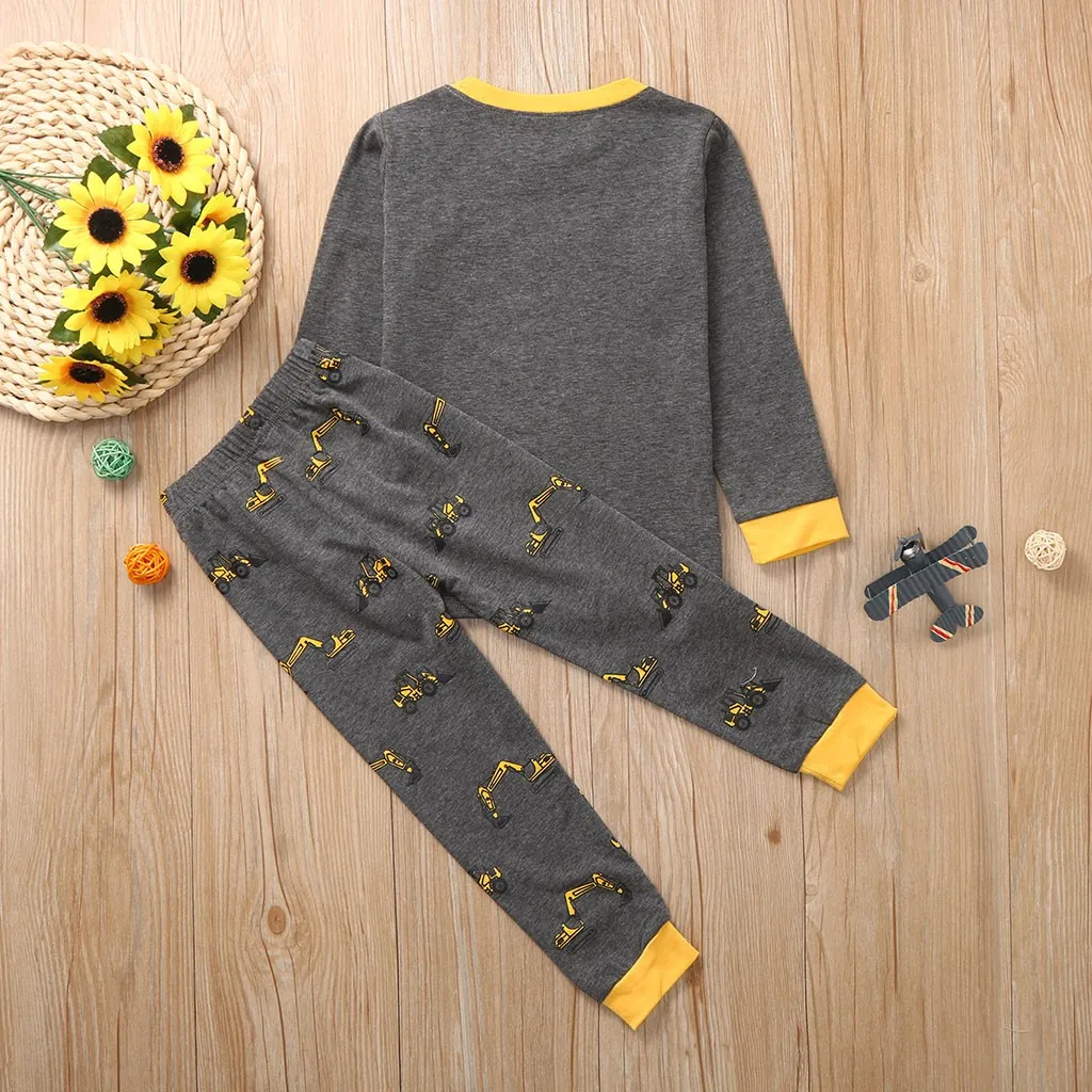 От 1 до 8 лет экскаваторакомплекты детской пижамы, пижама для девочек, детская одежда для сна, костюм футболка и штаны Одежда для мальчиков пижамы для младенцев Детские Модные топы и штаны
