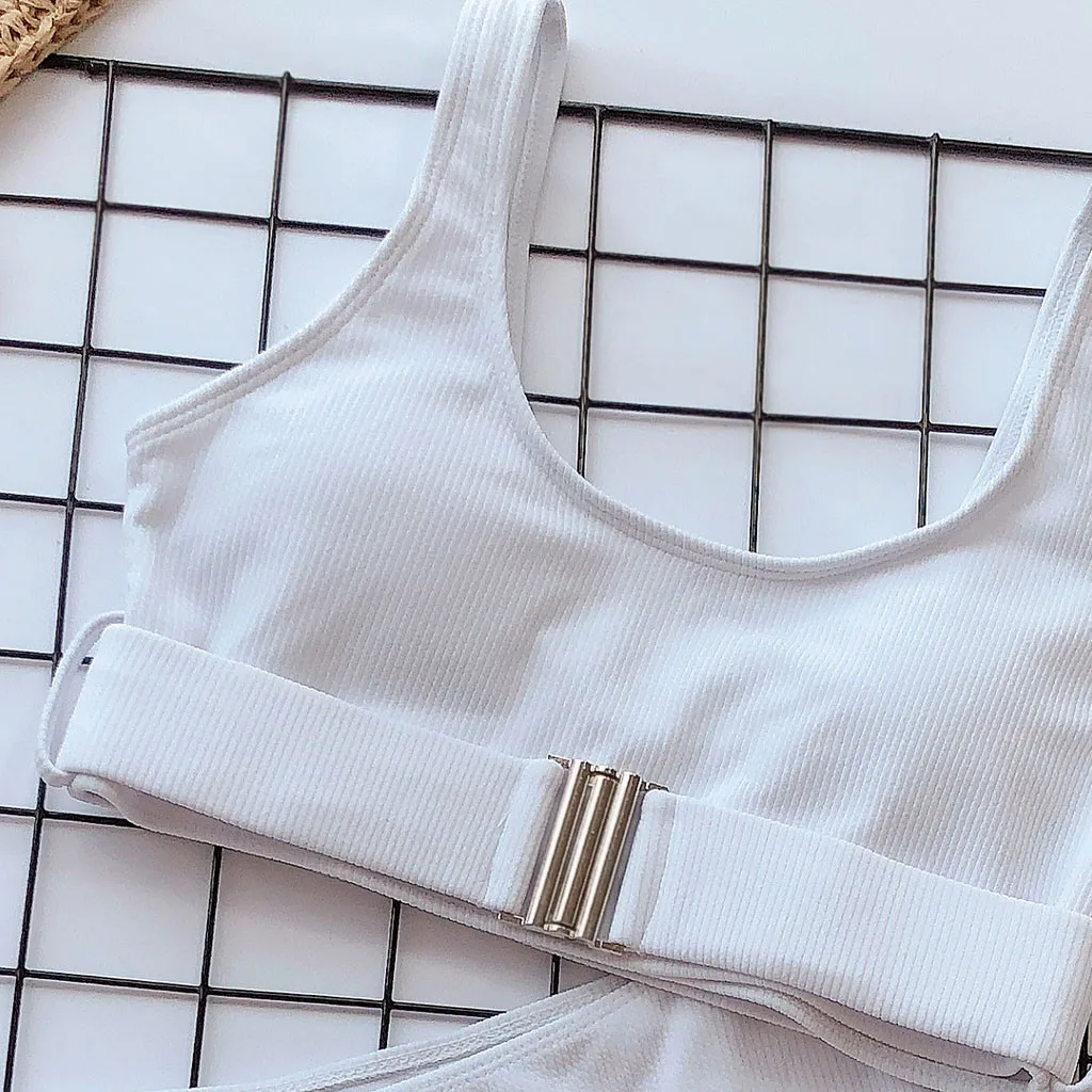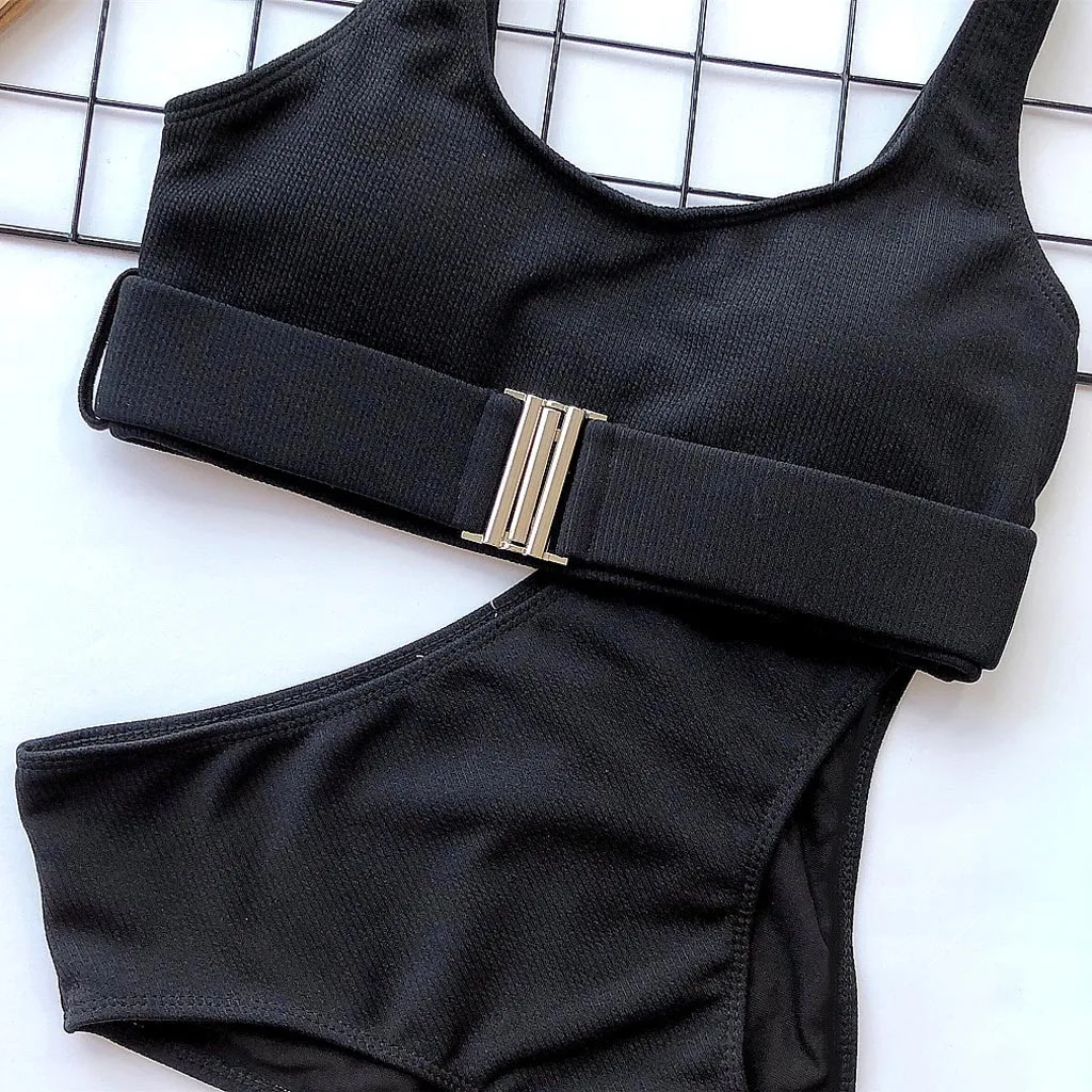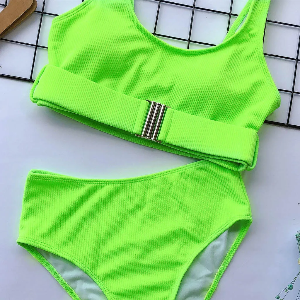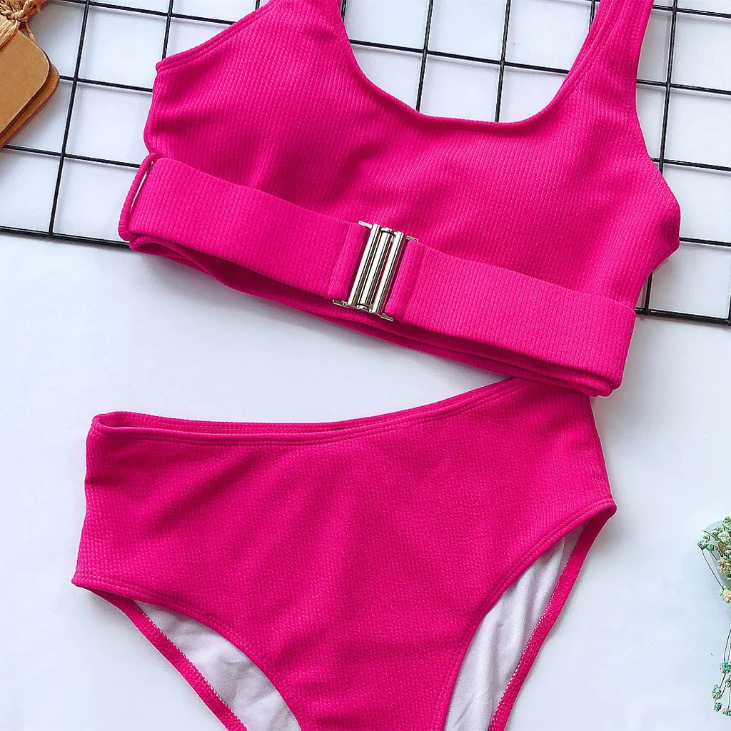Бикини пуш-ап женское однотонное с высокой талией и застежкой-пряжкой