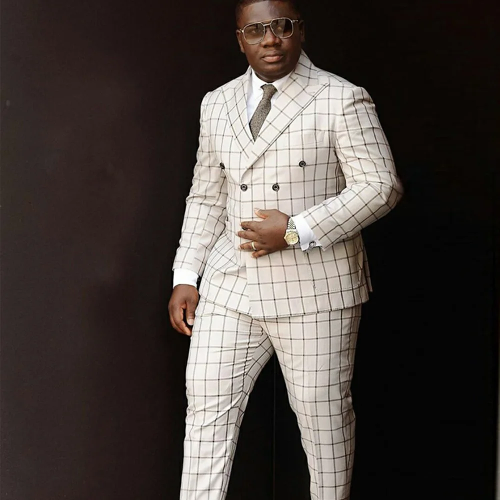 Классические дизайнерские двубортные мужские костюмы, повседневный облегающий Свадебный Блейзер, черные клетчатые смокинги
