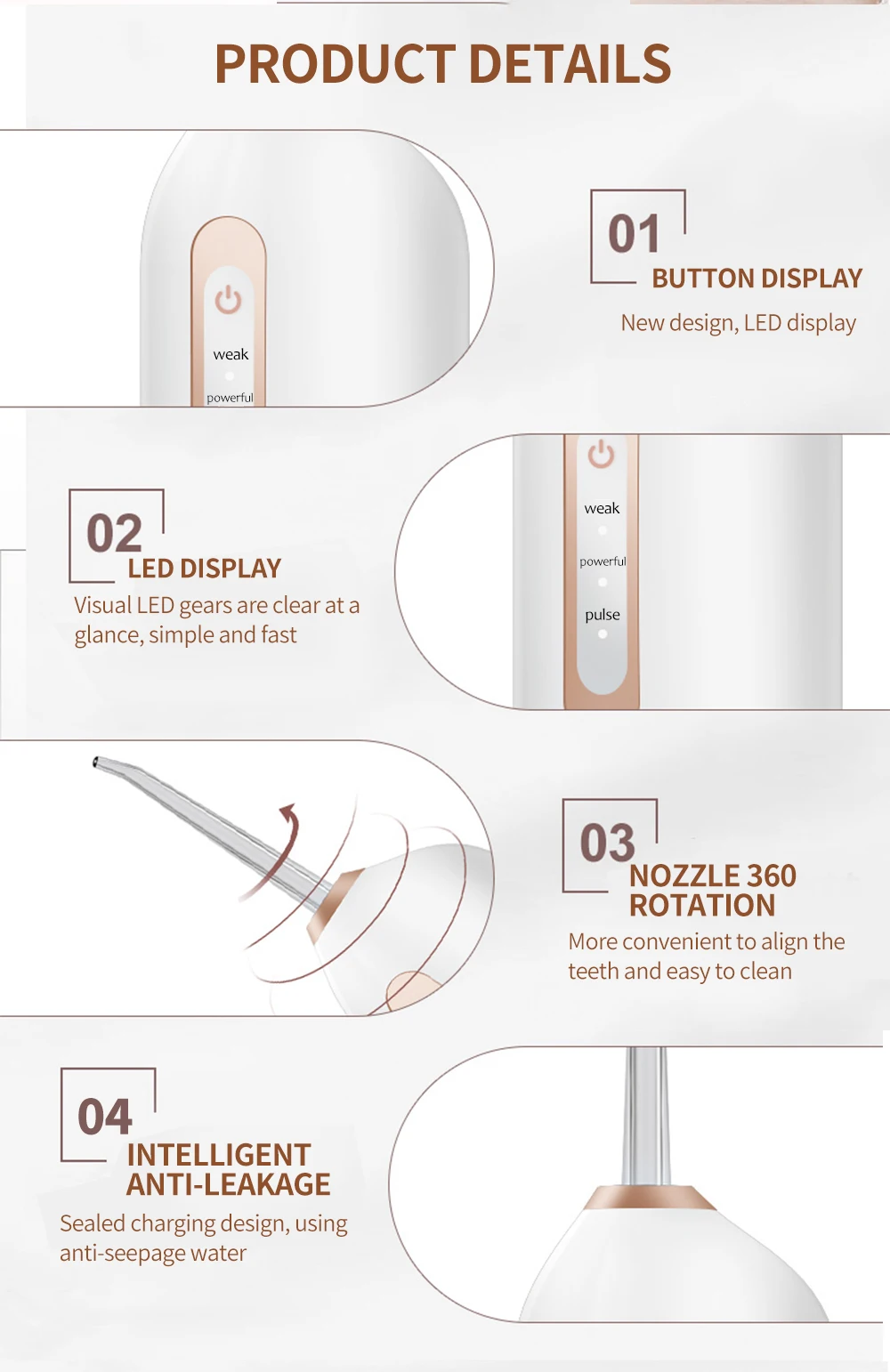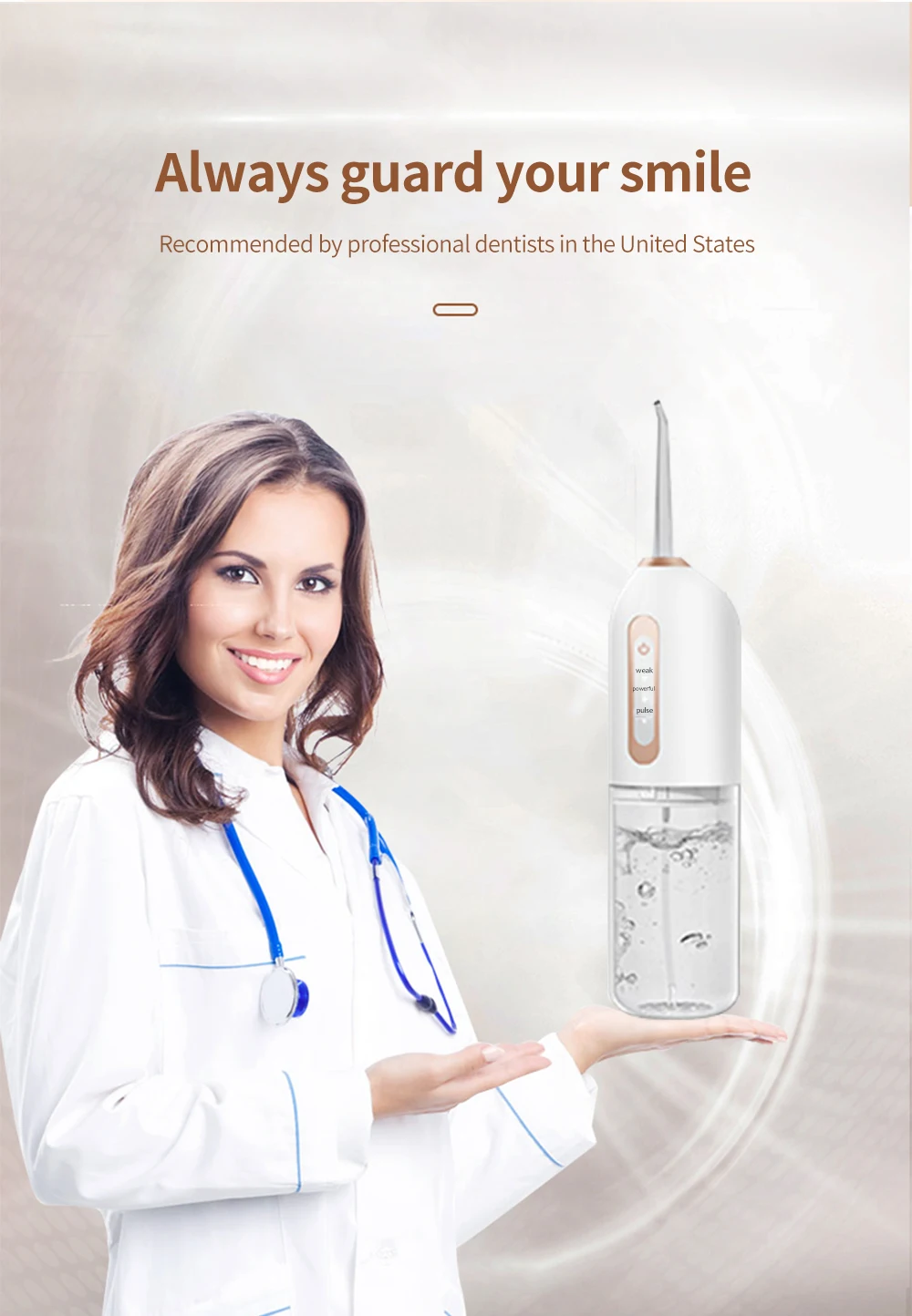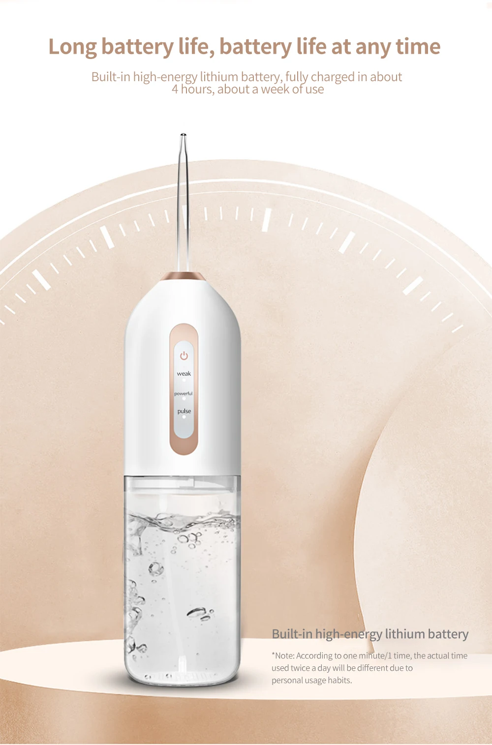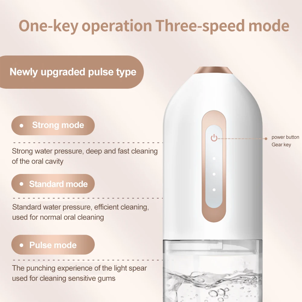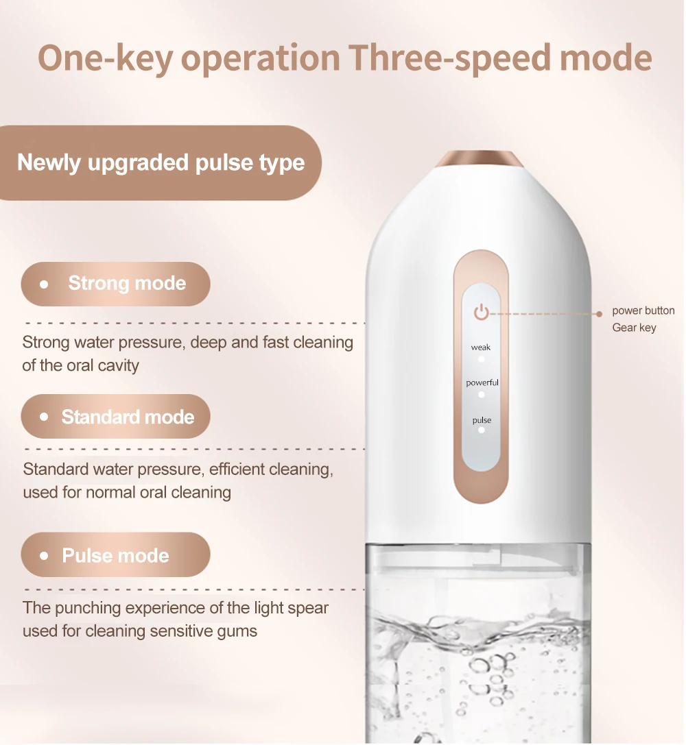 【 3 различных мода】зубная нить с нормальным, нежным и импульсным режимами (в диапазоне от 80 до 120 фунтов на кв. дюйм). Это означает, что подходит для всех различных условий зубов и десен, так что вы настраиваете свой собственный опыт чистки зубов. Мы предлагаем выбрать мягкий режим, когда вы используете зубную нить в первый раз.