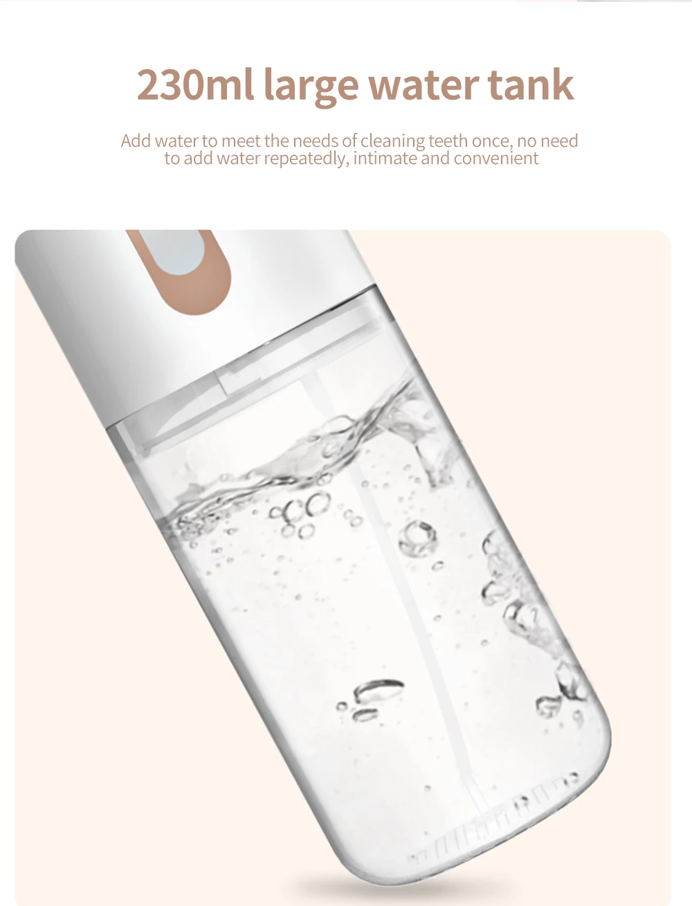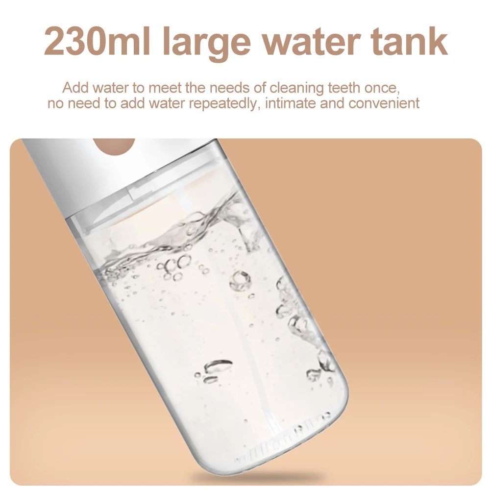 【Съемный резервуар для воды и водонепроницаемость IPX7 большой емкости резервуар для воды обеспечивает бесперебойное чистящее средство для зубов, не нужно заполнять воду повторно. В то же время, съемный резервуар для воды позволяет тщательно очистить известковый налет внутри. Двойная IPX7 водонепроницаемая защита, позволяет зубной Флоссер безопасно использоваться для душа в ванной комнате.
