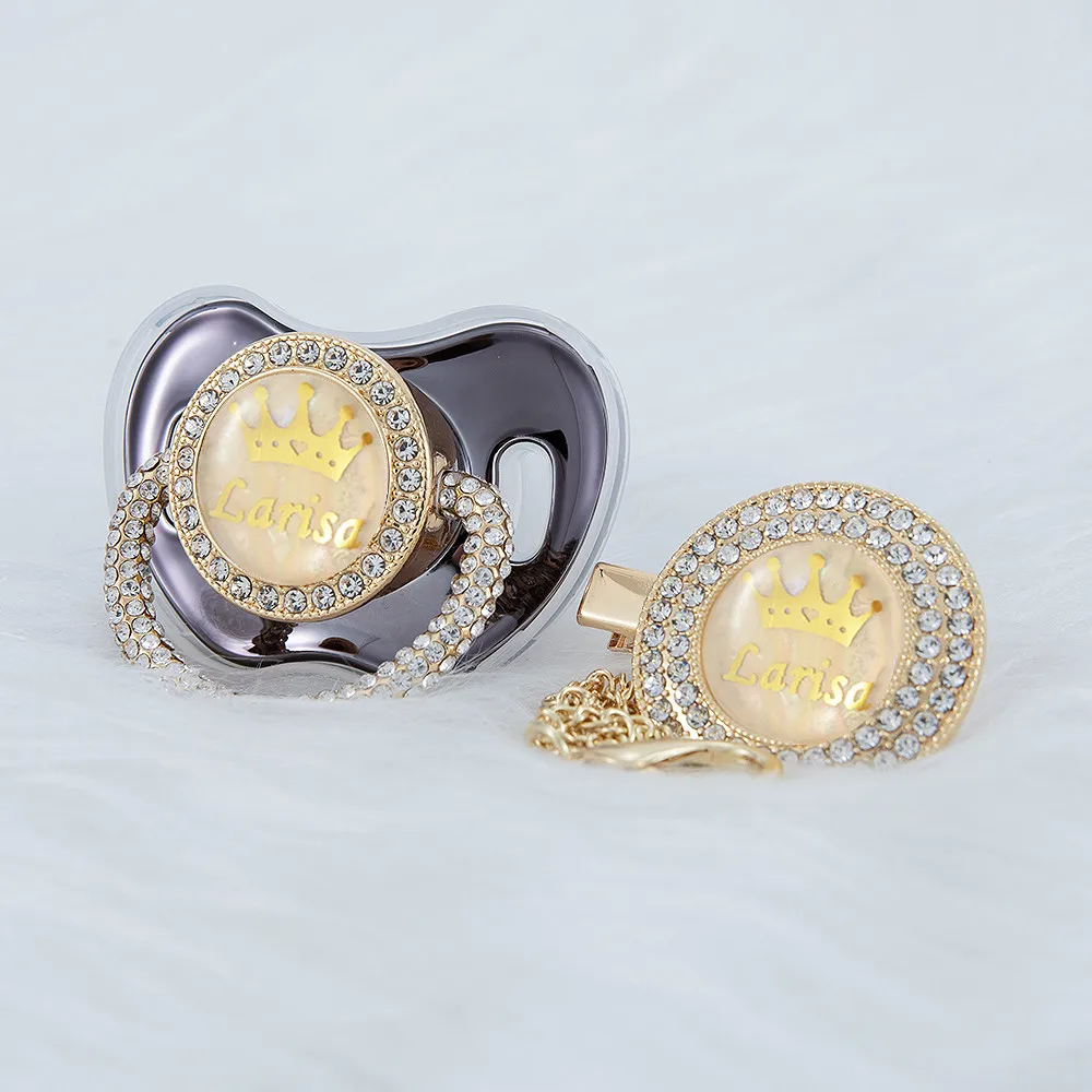 MIYOCAR персонализированные имя юбилей все bling соски-пустышки могут варьироваться в зависимости от пожеланий клиента набор из 14-каратного золота с покрытием новорожденного подарочный набор фотографии без крой, подходит для ежедневного использования