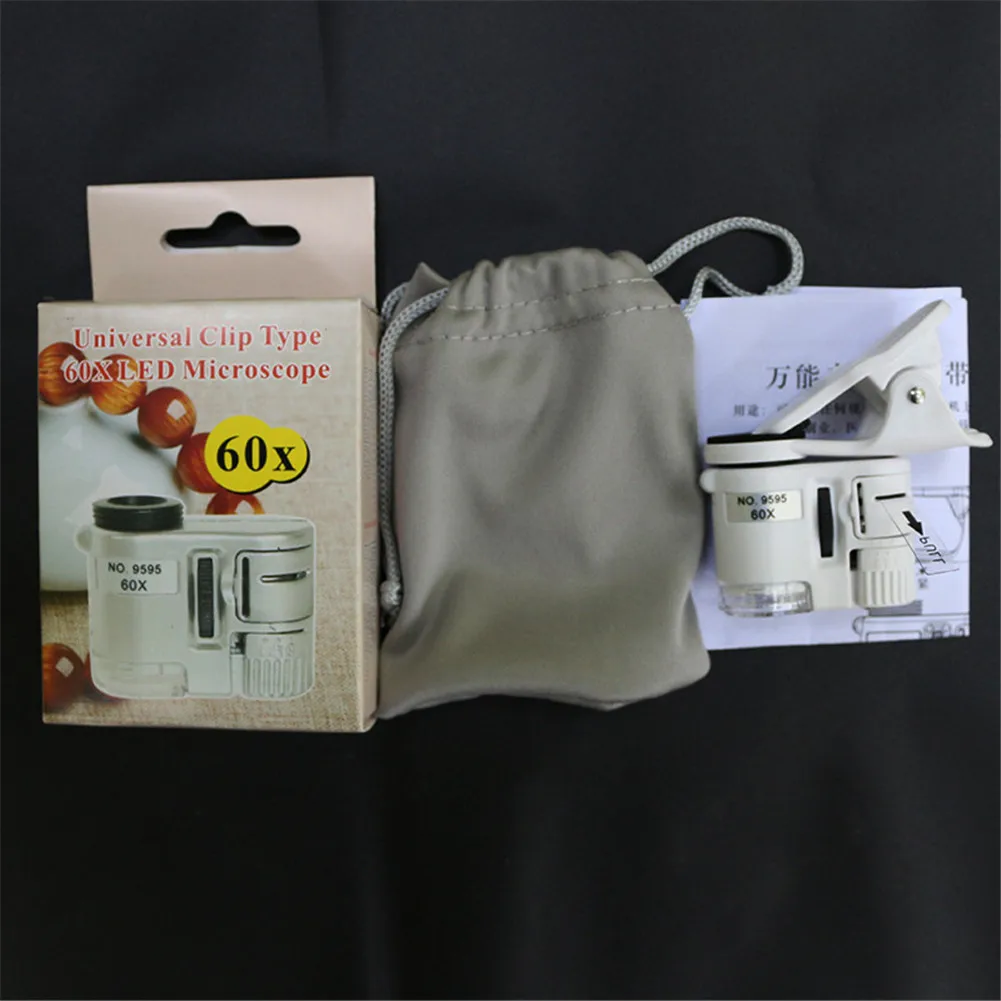 60X микроскоп Ювелирная Лупа с клипсой Карманный микроскоп