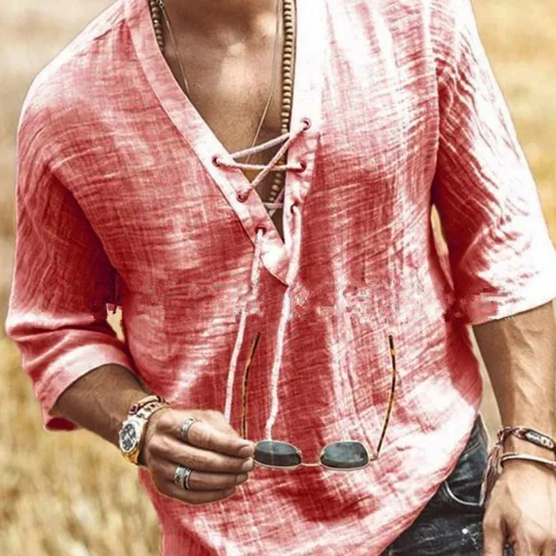 Футболка SHUJIN мужская с вырезами, льняная тенниска с глубоким V-образным вырезом, повседневная майка, однотонная льняной Топ, S-5XL, 2021