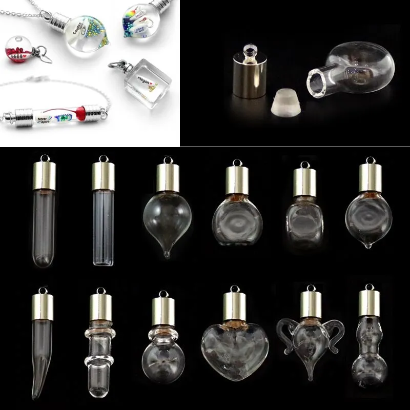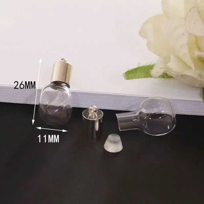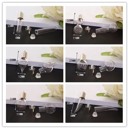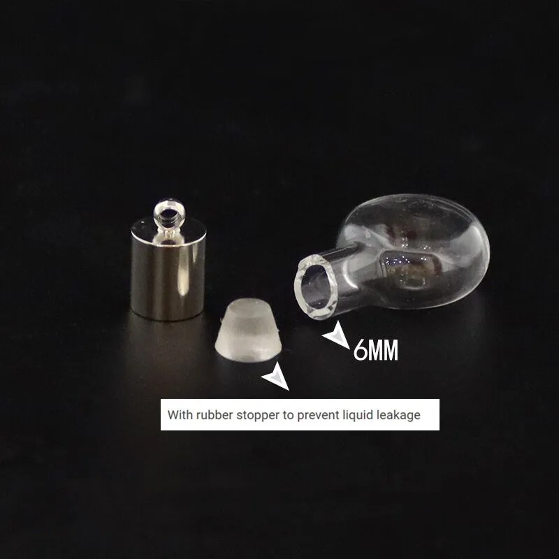 Стеклянный флакон разной формы, 2 шт., 6 мм (металлическая крышка с резиновой пробкой, миниатюрные Стеклянные Мини-флаконы, ювелирные украшения, ожерелье
