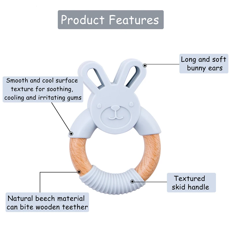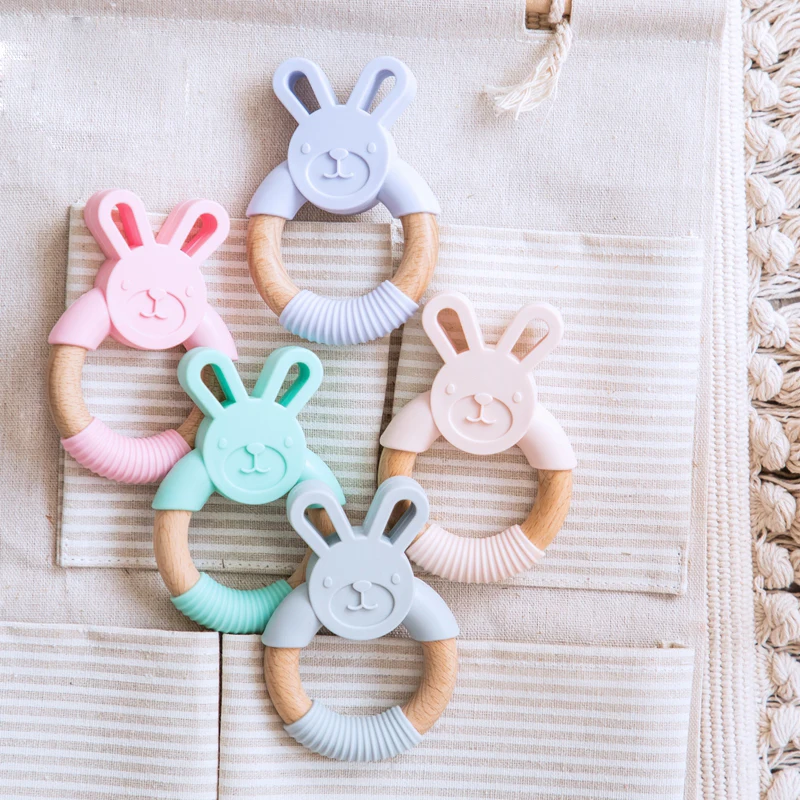 1 шт. детские игрушки силиконовый Прорезыватель мультяшное животное кольцо «кролик» BPA Бесплатные аксессуары для прорезывания зубов жевательные игрушки пищевой детский Прорезыватель