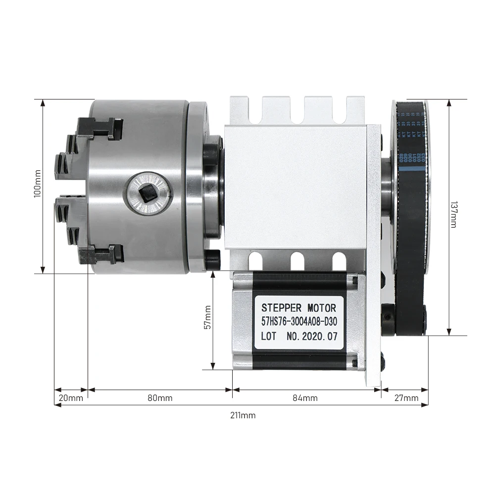 1 x K12-100 4-кулачковый патрон с шаговым двигателем1 задняя бабка mt2DM542-1 шт.Блок питания 1x350w3 6v