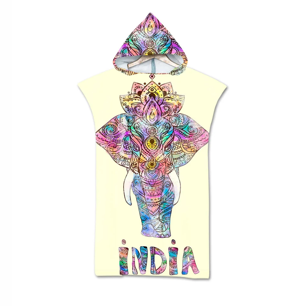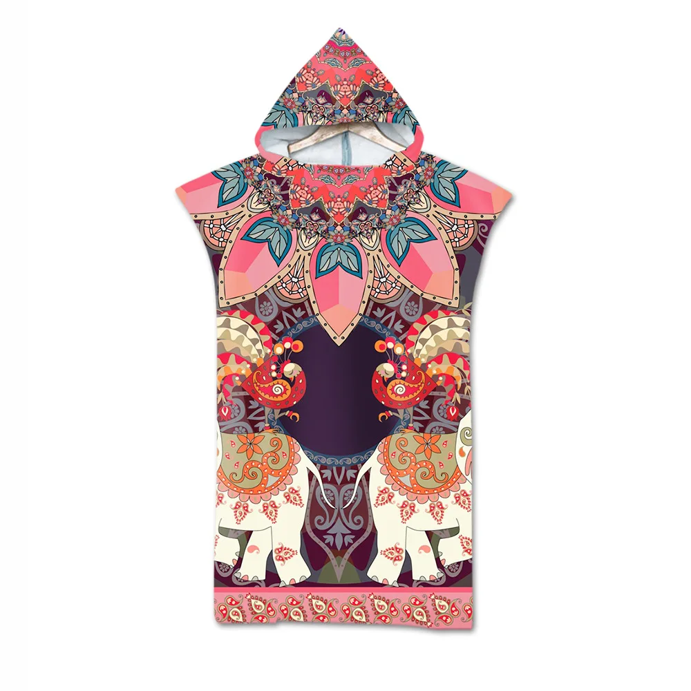 Пончо с капюшоном для взрослых, быстросохнущее пляжное полотенце с принтом слона, впитывающее пот, для дайвинга