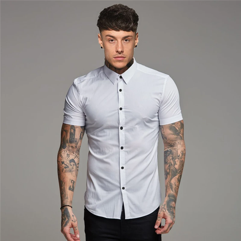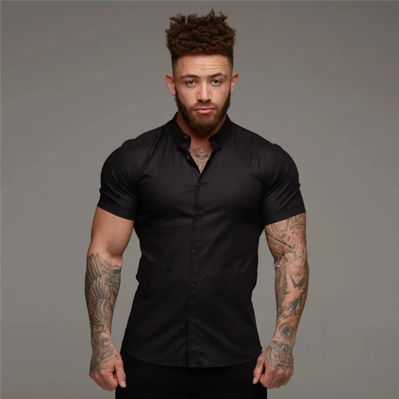 Новинка Мужская дышащая весенне-летняя брендовая спортивная короткая крутая Повседневная модная одежда для фитнеса рубашки с отложным воротником и коротким рукавом