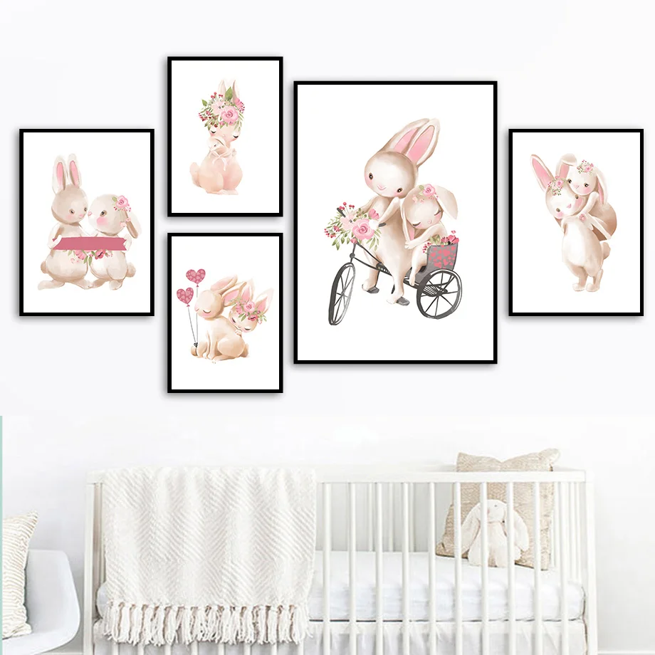 Настенная картина в стиле бохо, Бабочка, цветок, кролик, яблоко, гр...