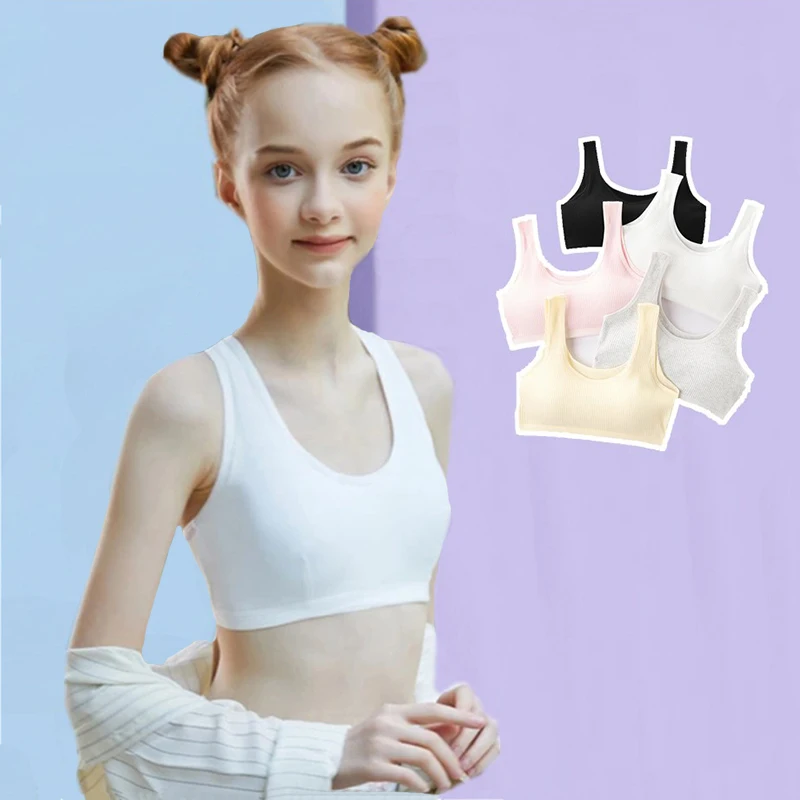 Бюстгальтер для девочек; Детский укороченный топ для подростков; Одежда для подростков; Нижнее белье для девочек-подростков; Хлопковый спортивный бюстгальтер с накладкой на грудь; Одежда для подростков; 2021
