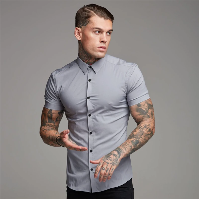 Рубашка мужская Спортивная с отложным воротником, Повседневная модная дышащая футболка с коротким рукавом, брендовая одежда для фитнеса, весна-лето