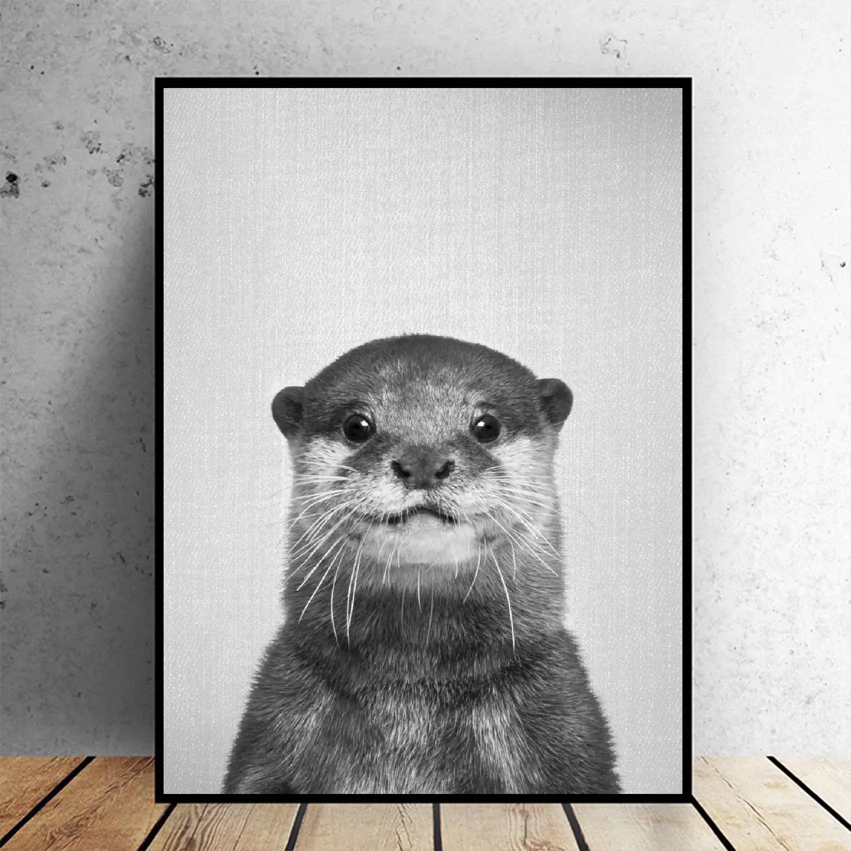 Черно-белая Картина на холсте с выдрой Художественная печать плакат картина на стену современный минималистичный декор для спальни гостиной