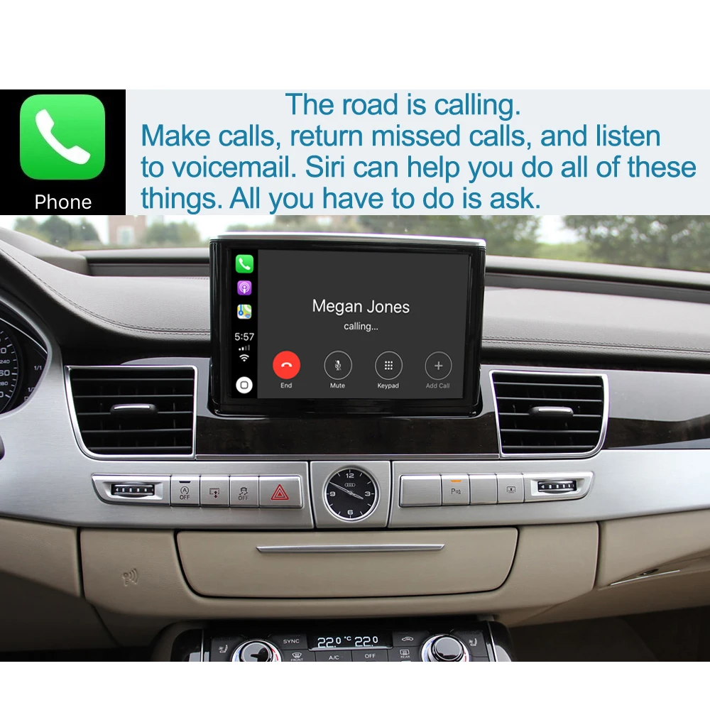 Если ваша система MMI оснащена навигацией, телефонным модулем или Bluetooth, будь то Apple Maps, Spotify, совершение/прием звонков или использование Siri для ответа на текст, система полностью поддерживает системы Apple и функции телефона.