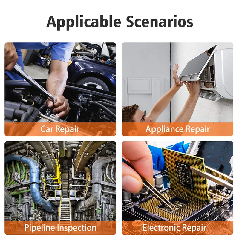 Использование: автомобильный двигатель, вентиляционное отверстие, промышленное, строительные площадки, ремонт, обслуживание дома, трубопровод, потолок, стена, электронное оборудование, проверка технического обслуживания, корабль, самолет, сборка деталей,