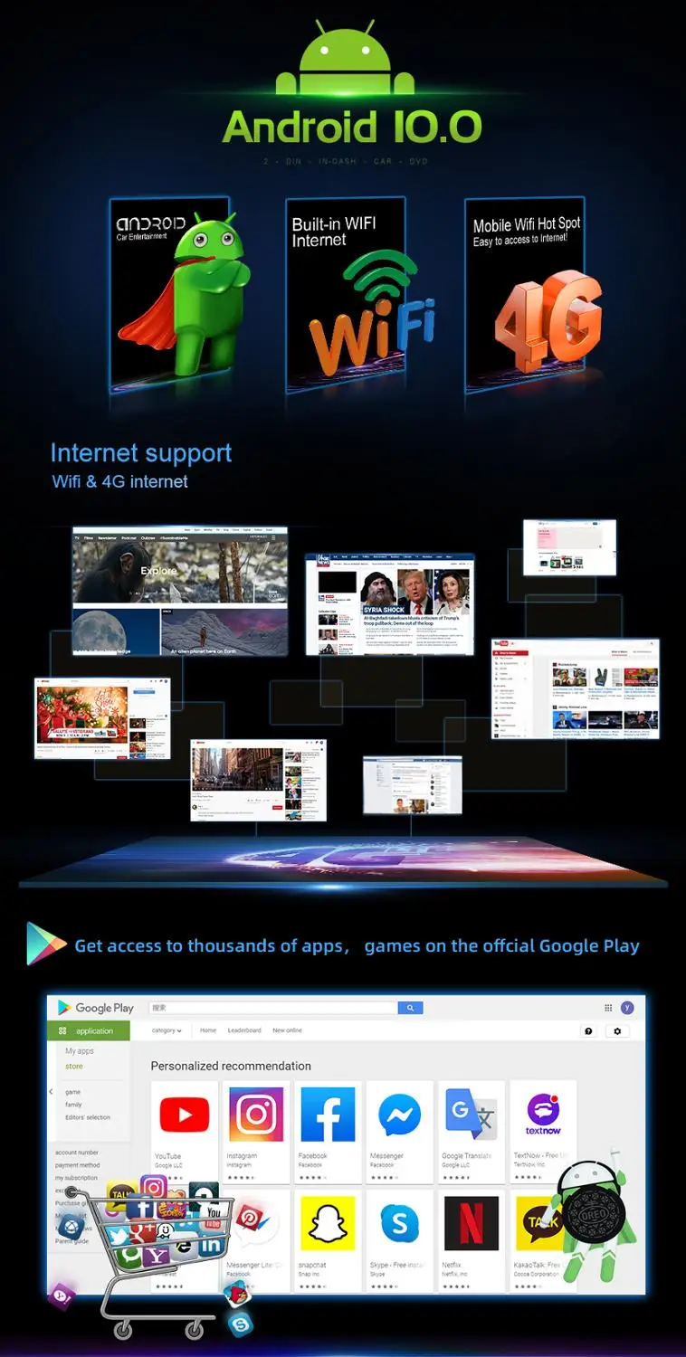 Сенсорный экран + радио + FM/AM + RDS + gps-навигация + карта + Wifi + Bluetooth + управление рулевым колесом + сплит-экран + USB + SD + AUX вход/выход + зеркальная ссылка + задний камера + сабвуфер + Play Sore + EQ + набор обоев + логотип автомобиля + 3G/4G + TPMS + DAB + OBD 2 + DVR + TV